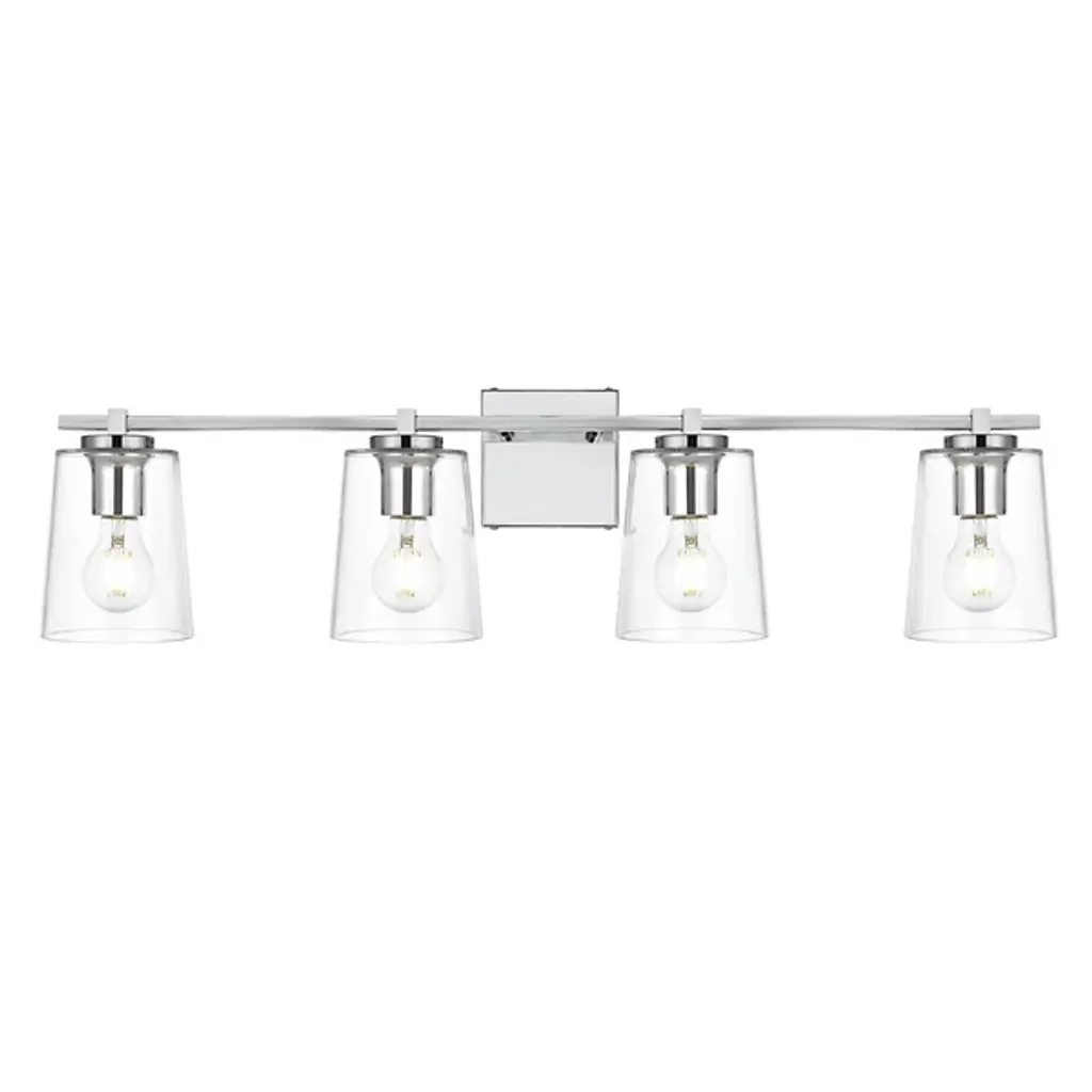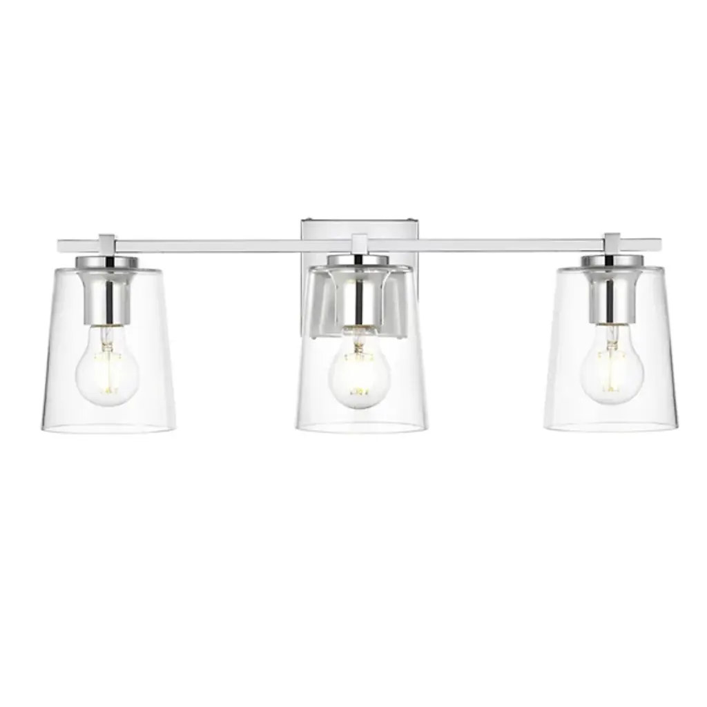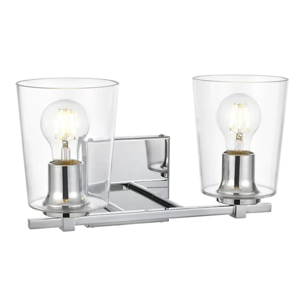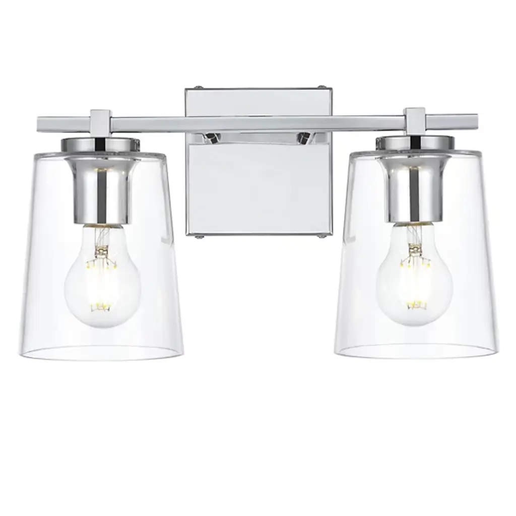 The Kacey Bath Vanity Light from Elegant Lighting doubles down on style and functionality. Two crystalline cylinders stand at attention on their metal mount, prepared to fire beams of brilliance at a moment's notice. This dynamic duo transforms your vanity into a stage, with you as the star and these lights as your spotlight operators. Designed for versatility, it can be installed as an uplight or downlight, adapting to your space and preferences. Compatible with dimmers, this vanity light offers both practicality and ambiance control.