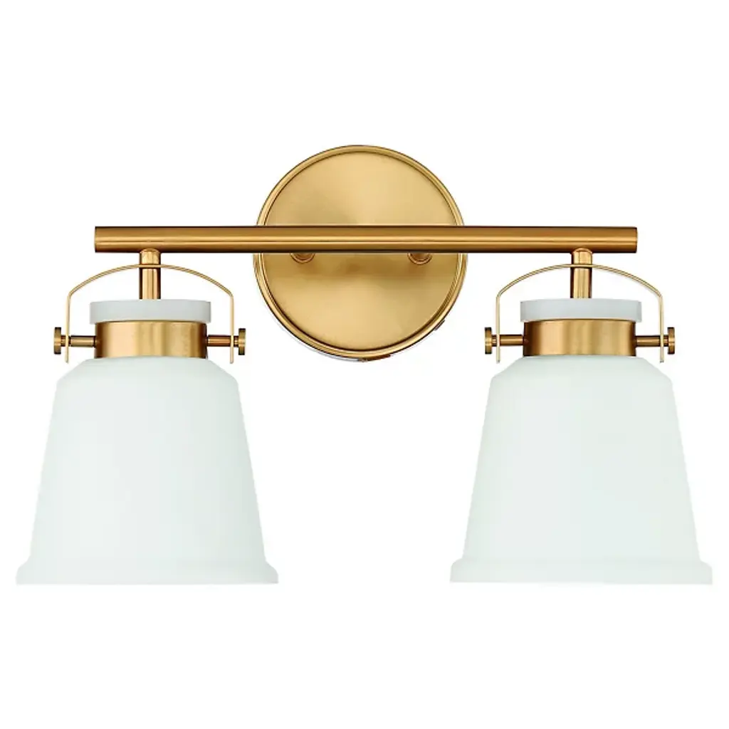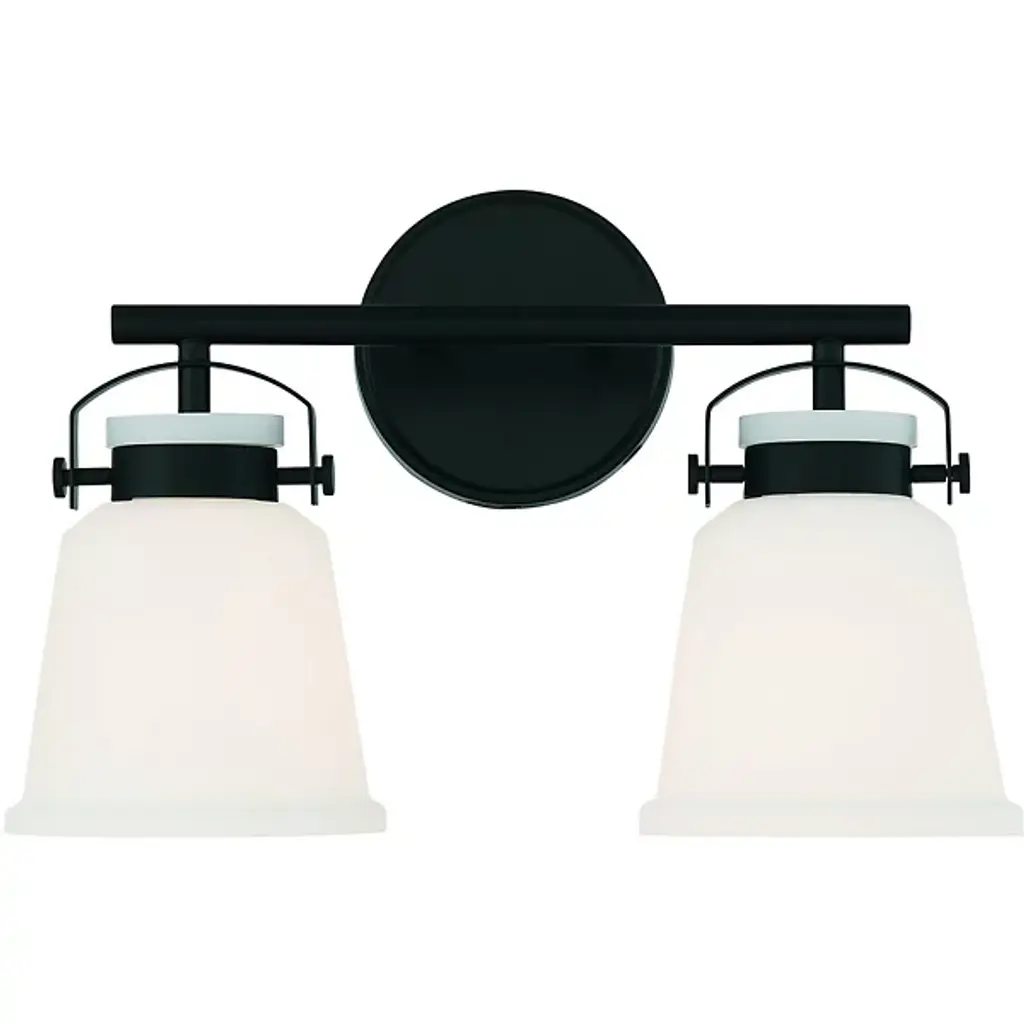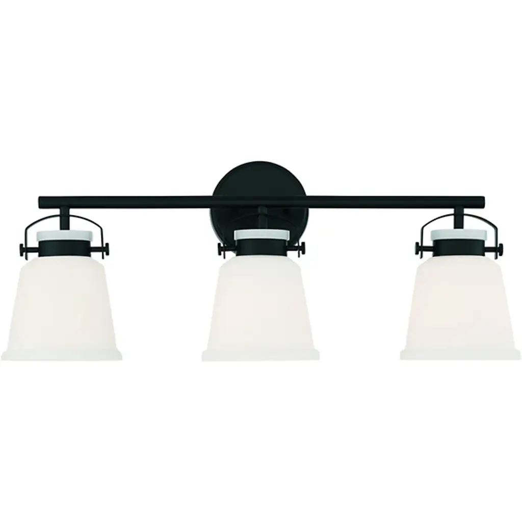 Bring a chic and decorative look to your bathroom with the Kaden Vanity Light by Savoy House. A metallic rod rests along a backplate secured to your wall. Hanging from this rod are numerous Opal Shades which house bulbs that give your room its luminescence. Placement above your bathroom mirror allows light to diffuse effortlessly from overhead. The eye is drawn to the distinctive bell shape embodied in the fixture’s design.