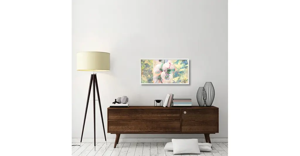 Custom framed museum quality giclee on canvas. Frame: Collins White Stem. Frame Width: 7/8 in. Hand made in the USA.