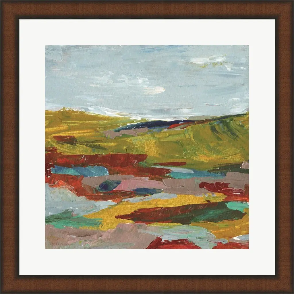 Joyful by Kamdon Kreations is a high quality piece of framed artwork. The finished size of this piece is 19.75" X 19.75" with an image size of 14" X 14". It has a Slim Teak Espresso Brown Edges frame with a 2" white mat and is finished with high quality Glass. 100% Satisfaction Guaranteed.