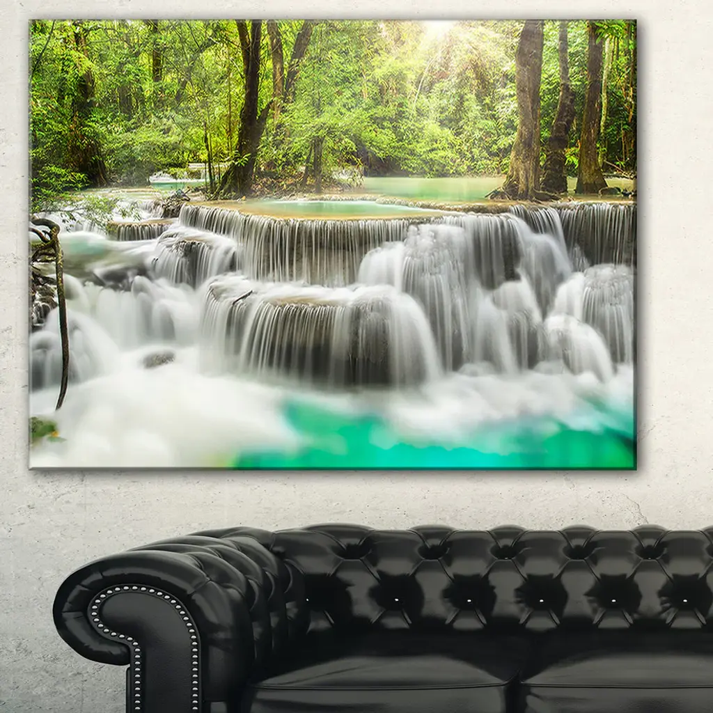 The Kanchanaburi Erawan Waterfall canvas art print is sure to make an impression on anyone who sees it. This artwork is gallery wrapped around a 1-inch solid wood frame and arrives carefully packaged and entirely ready to hang on the wall. Design Art only uses the highest resolution and pigments to ensure a crisp colorful print that is never faded or pixelated. This artwork is sure to be a conversation starter in any home or office.