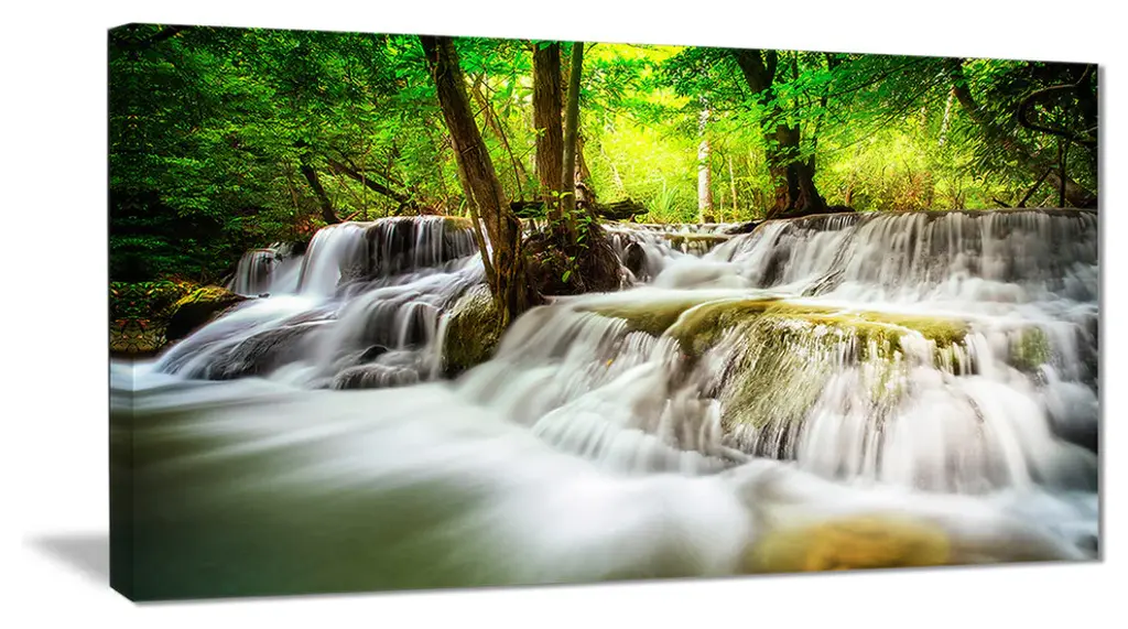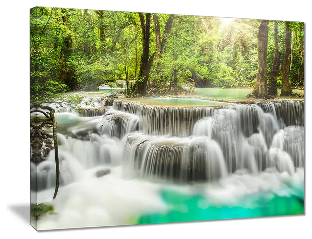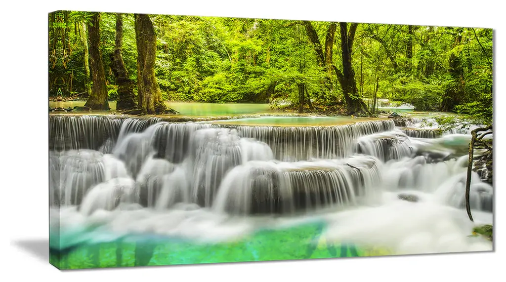 The Kanchanaburi Erawan Waterfall canvas art print is sure to make an impression on anyone who sees it. This artwork is gallery wrapped around a 1-inch solid wood frame and arrives carefully packaged and entirely ready to hang on the wall. Design Art only uses the highest resolution and pigments to ensure a crisp colorful print that is never faded or pixelated. This artwork is sure to be a conversation starter in any home or office.