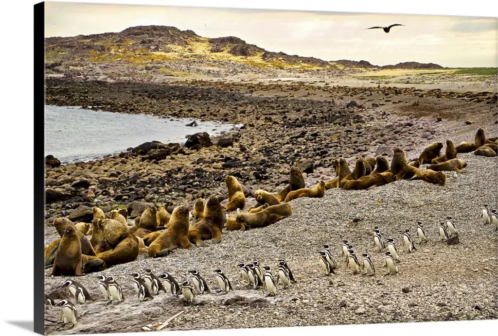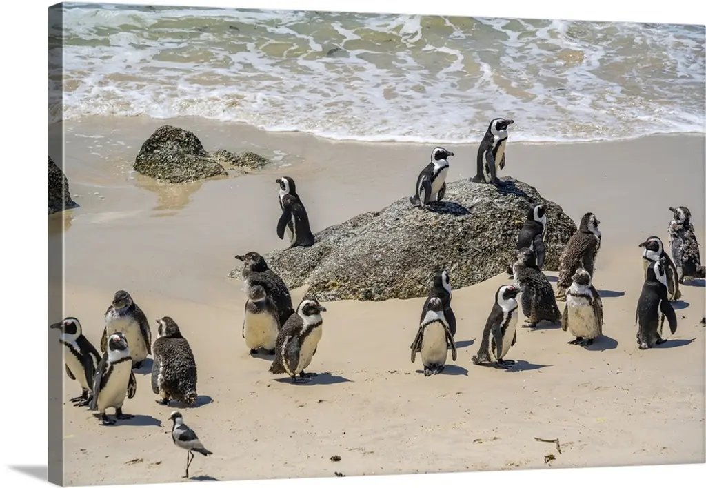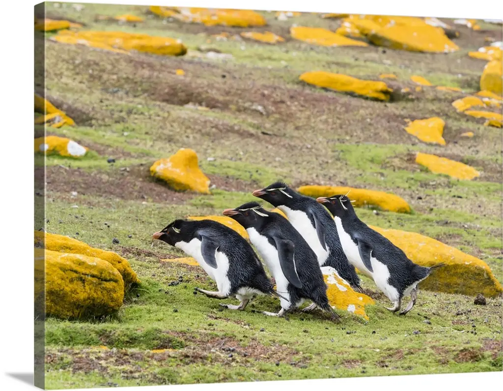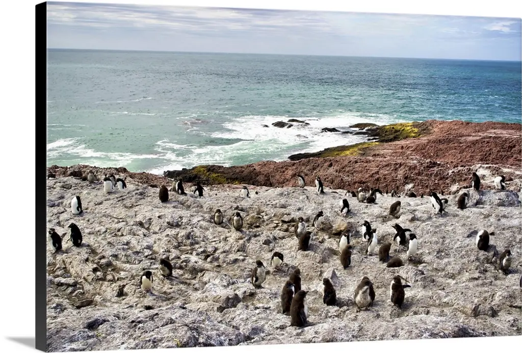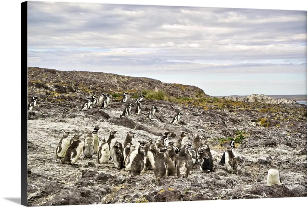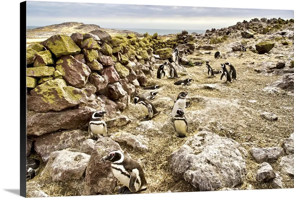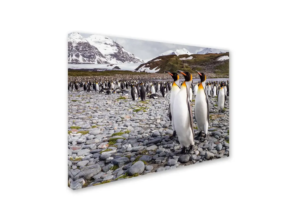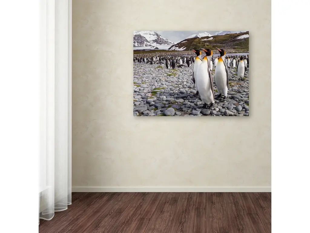Artist: Karen LunneySubject: AnimalsStyle: Modern & ContemporaryProduct Type: Gallery-Wrapped Canvas ArtMade in USAThis ready to hang, gallery-wrapped art piece features a group of penguins standing in a field of stones.1x is not your average photo site. All photos on 1x are selected by a team of professional gallery curators, just like in a real photo gallery. Our curators have experience from well-known institutions such as Sothebys and Tate Modern Art. We believe that everyone has an inner photographer, just waiting to be discovered. Getting published on 1x is a great achievement; many photographers whose works now hang in art galleries were once discovered on 1x. Its no coincidence that art directors, book editors, and magazines all over the world use photos from 1x photographers.Giclee (jee-clay) is an advanced printmaking process for creating high quality fine art reproductions. The attainable excellence that Giclee printmaking affords makes the reproduction virtually indistinguishable from the original piece. The result is wide acceptance of Giclee by galleries, museums, and private collectors. Gallery wrap is a method of stretching an artist's canvas so that the canvas wraps around the sides and is secured a hidden, wooden frame. This method of stretching and preparing a canvas allows for a frameless presentation of the finished painting.