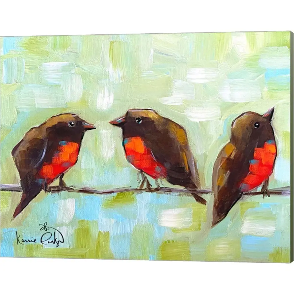 Karrie Evenson '3 Robins On A Wire' Canvas Art - 20 X 16