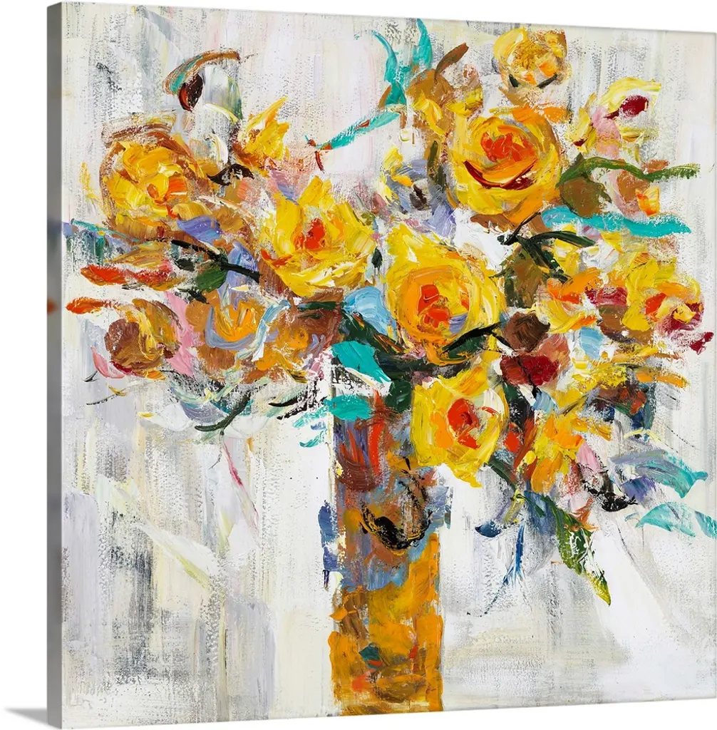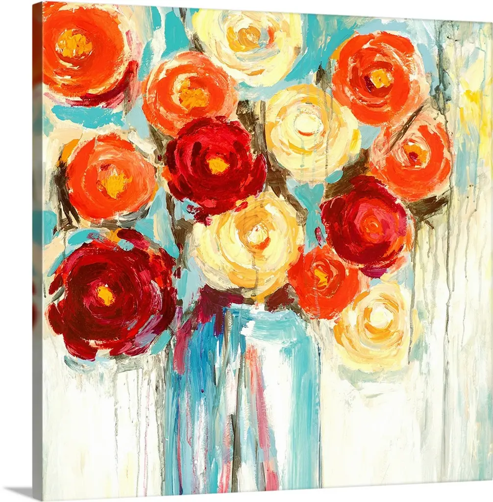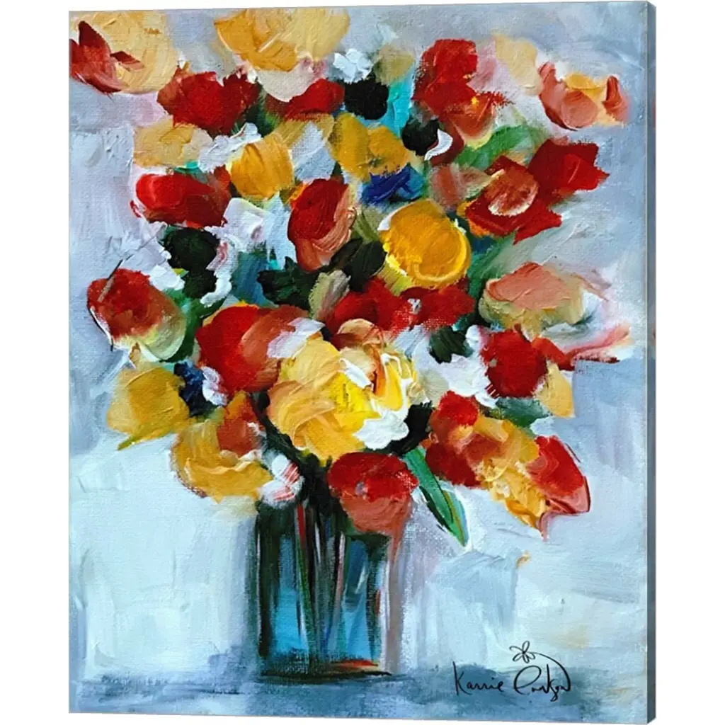 Bouquet 2 by Karrie Evenson is a high quality piece of canvas artwork. The finished size of this piece is 16" X 20", and it has a depth 0.75". There is a UV protective coating over the entire image, and it is ready to hang on your wall with a standard drywall screw (not included). 100% Satisfaction Guaranteed.