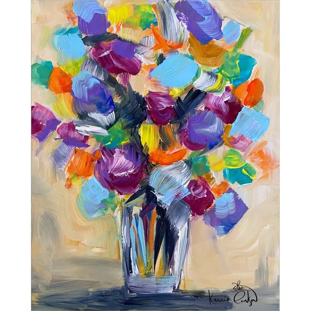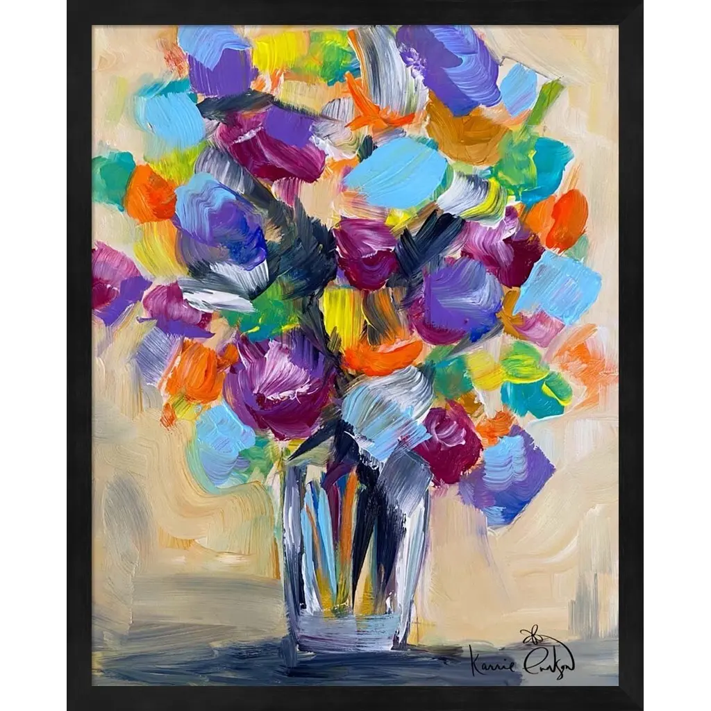 Bouquet 4 by Karrie Evenson is a high quality piece of framed artwork. The finished size of this piece is 17.25" X 21.25". It has a Black Deep Box frame and is finished with high quality glass. 100% Satisfaction Guaranteed.