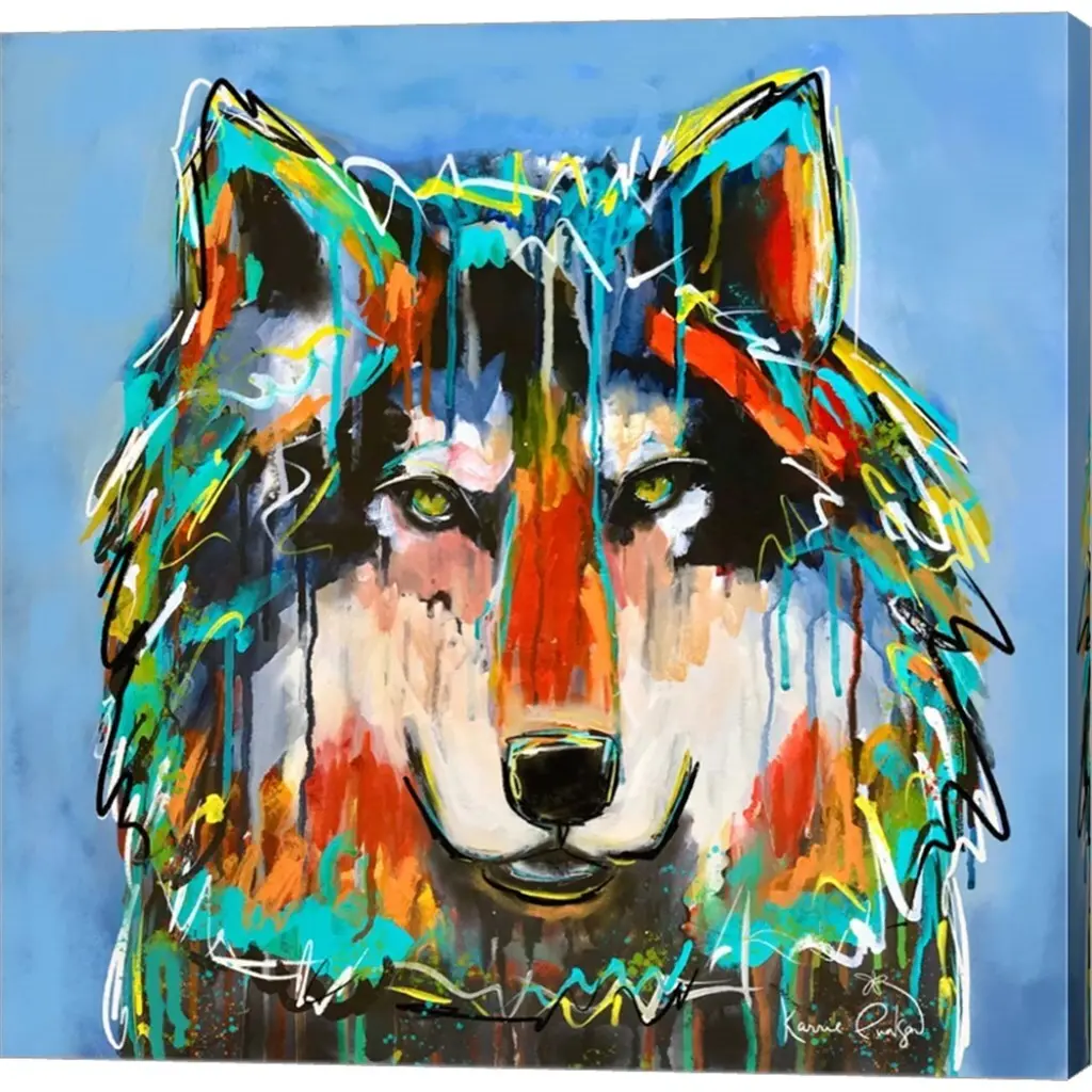 Wolf by Karrie Evenson is a high quality piece of canvas artwork. The finished size of this piece is 12" X 12", and it has a depth 1.5". There is a UV protective coating over the entire image, and it is ready to hang on your wall with a standard drywall screw (not included). 100% Satisfaction Guaranteed.