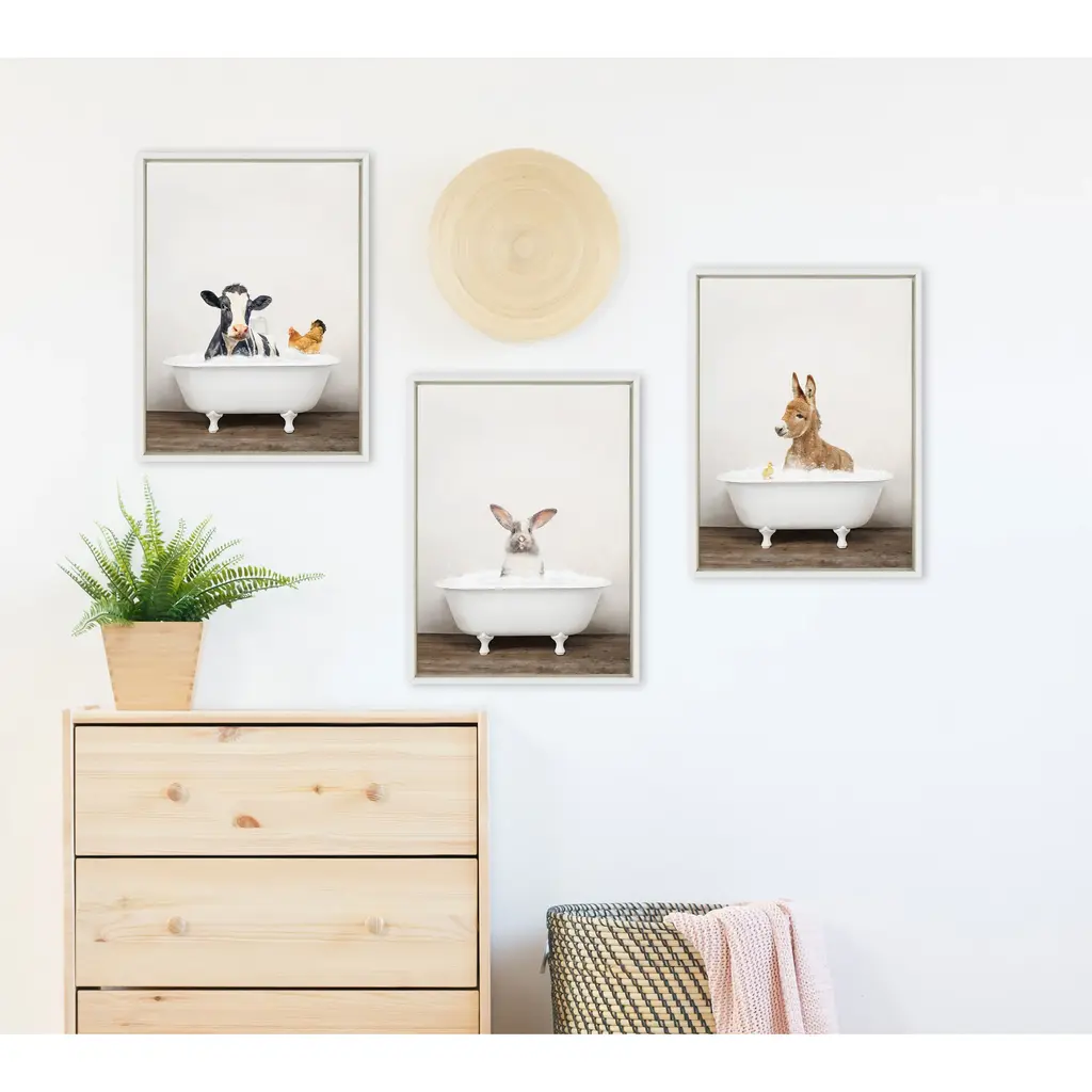 Kate And Laurel Baby Donkey Rustic Bath Framed Canvas By Amy Peterson - Grey