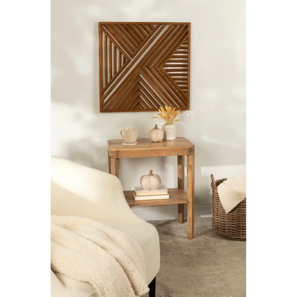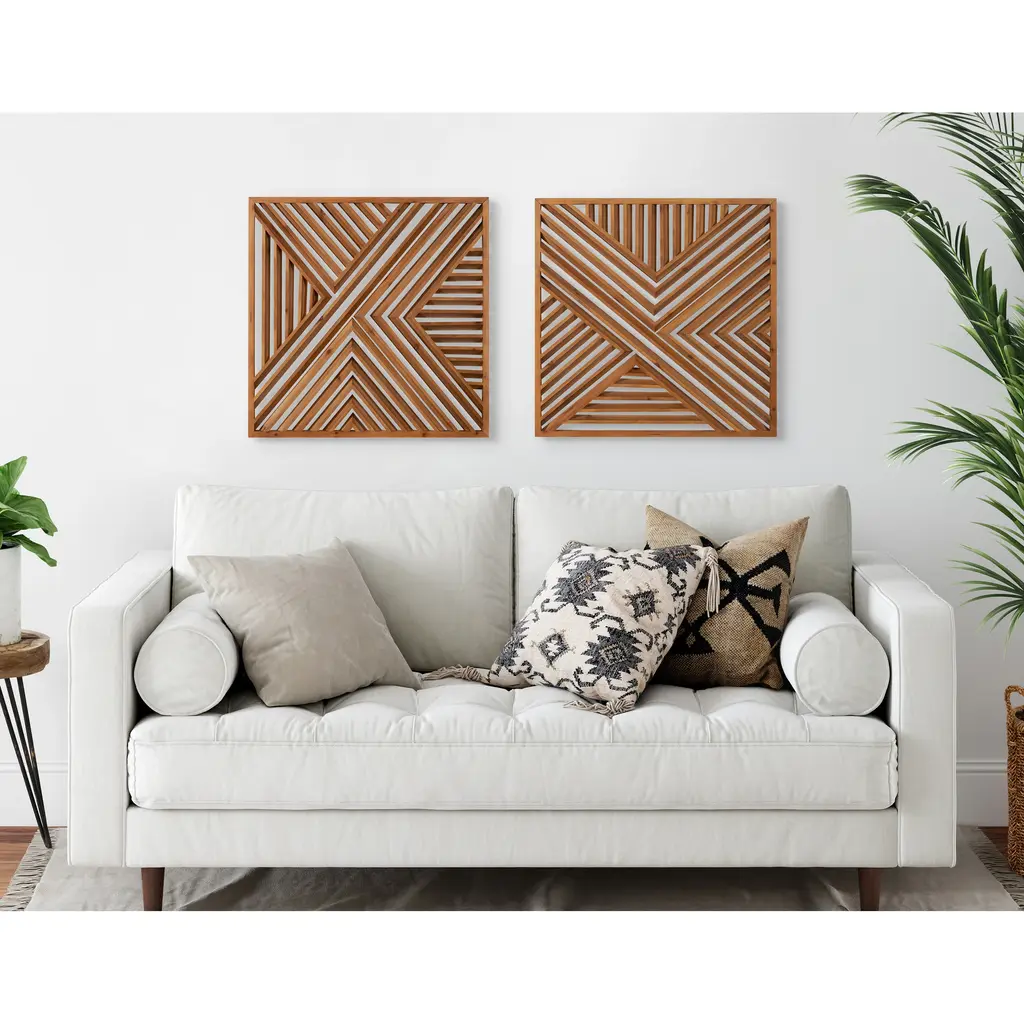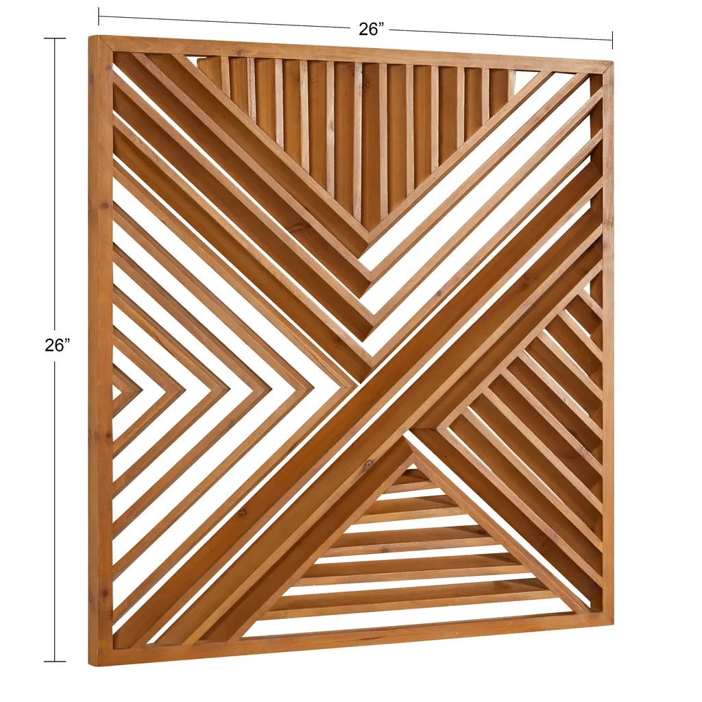 Create a memorable modern decor aesthetic on your wall with the Barreda wall plaque. This mesmerizing wall accent utilizes a wealth of dimension to command attention through visual eccentricities. Each plaque incorporates horizontal and diagonal lines to draw the eye and create a dynamic focal point amidst your other home decor. The Barreda is crafted from rich, high-quality solid wood, delivering a statement piece capable of flourishing for generations to come. The Barreda features a symmetrical square shape, measuring 26 inches wide by 1 inch deep by 26 inches tall. This size is fantastic for display in various decor spaces, either independently or in a group of multiples for a full wall gallery. It hangs in vertical and horizontal orientations, so you can change the look by rotating each on the wall if hung in groups. Hang this transitional accent piece in your living room, bedroom, entryway, or dining room. Use the sawtooth hangers attached to the back of the frame for quick and easy installation in a matter of minutes.