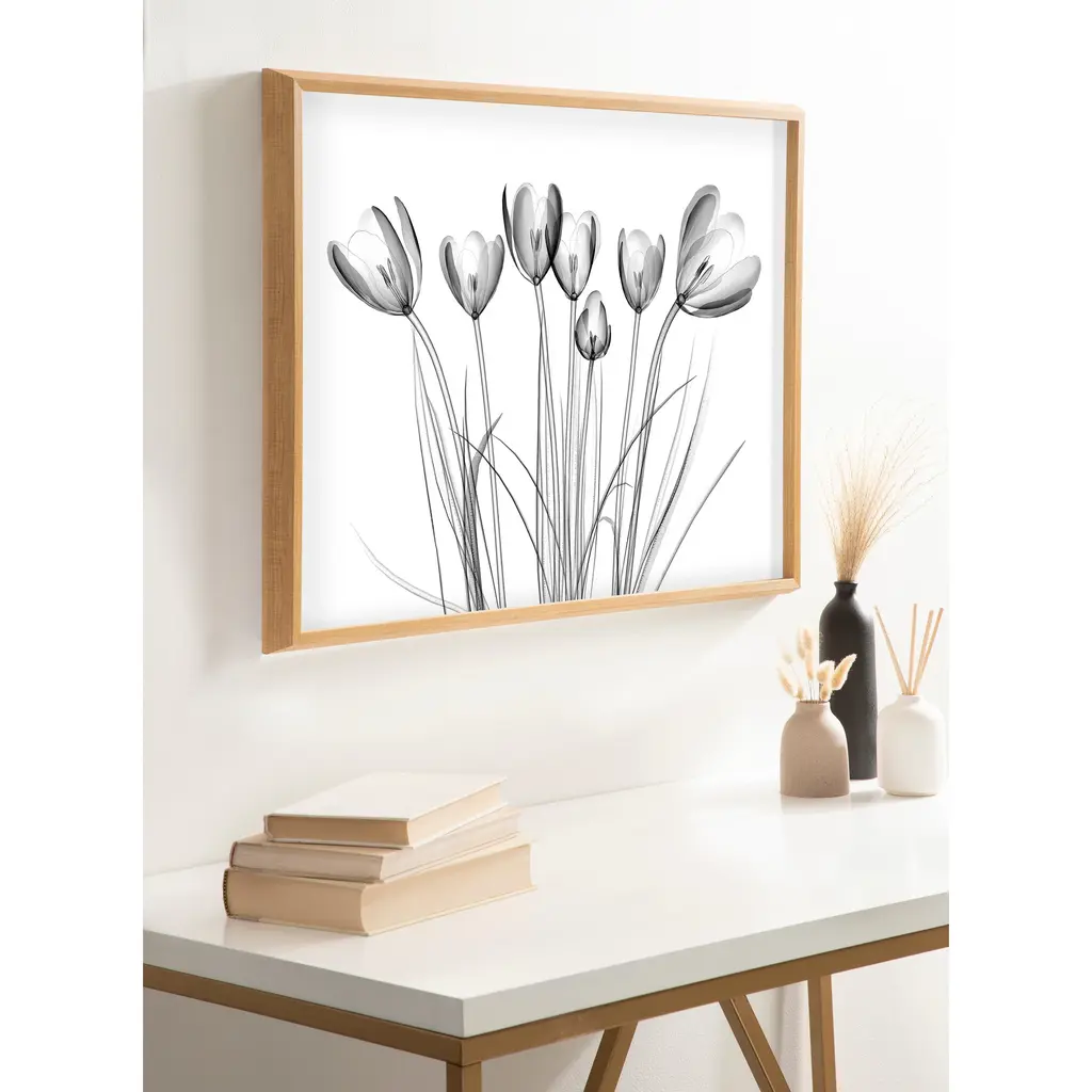 Charm your guests with this stunning floral printed glass wall art by The Creative Bunc Studio. Our glass and acrylic printed art uses a state-of-the-art printing process that creates vibrant, high-resolution prints. This allows you to step away from the traditional canvas print and provide your space with a standout element of artistic design. With its transparent material, our glass and acrylic prints give you a three-dimensional look that makes the art feel like it is part of the wall, not just hanging on it. Showcase this art in your living room, bedroom, home office, kitchen, bathroom or anywhere you want to bring a little beauty and charm to your walls. Specializing in home décor, we are continually bringing timeless works of art for the traditional decorator as well as trend forward pieces for that eclectic art lover. The glass and acrylic surfaces can also be used with dry-erase markers, so you can customize it or use it as a fun drawing surface for your kids. Our surfaces don't wear out as easily as traditional whiteboards, allowing you to reuse and wipe the surface repeatedly, then hang it back on your wall like nothing ever happened. The outer dimensions are 18 inches by 24 inches. Print Name: "Crocus X Ray Floral BW"