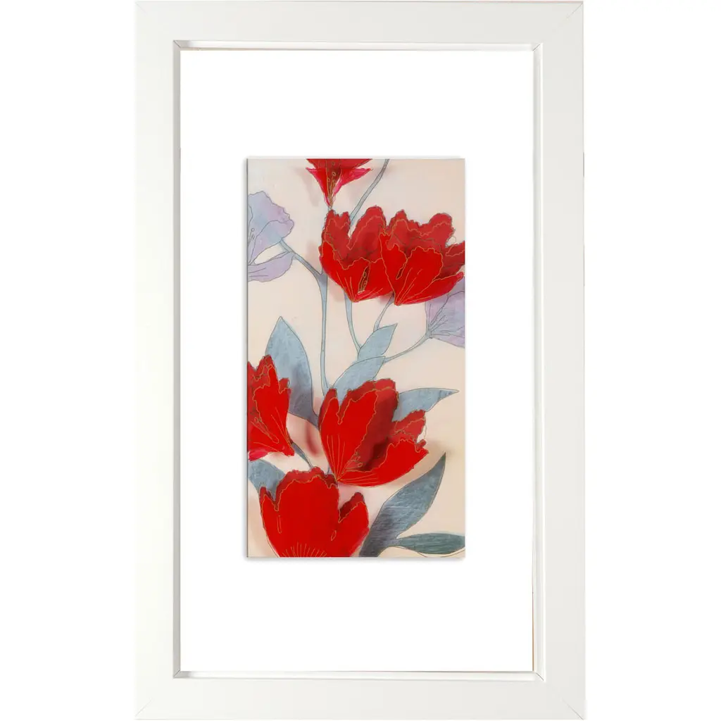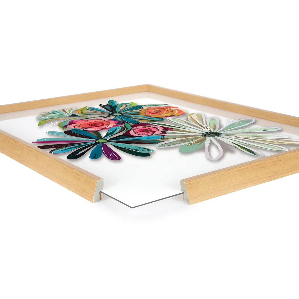 This cool print by Jessi Raulet of Ettavee brings a pop of color and nature to your home. Framed in the USA in Waunakee, Wisconsin, this acrylic art will be a pleasure to look at every day in your living room, bedroom, nursery, or any room in the home. This art print also makes an excellent gift for birthdays, holidays, or house-warming parties. Printed on acrylic and framed with a lightweight polystyrene frame, this wall art is easy to display on the wall. The outer dimensions are 24 inches by 32 inches. Print Name: "Flowers on Glass 2 Whole Flowers"