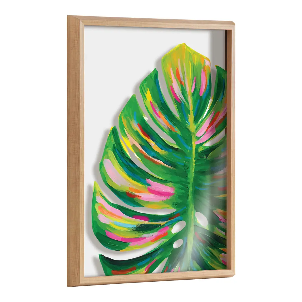 Kate And Laurel Blake Monstera Framed Printed Glass By Jessi Raulet - 24x32 - Natural