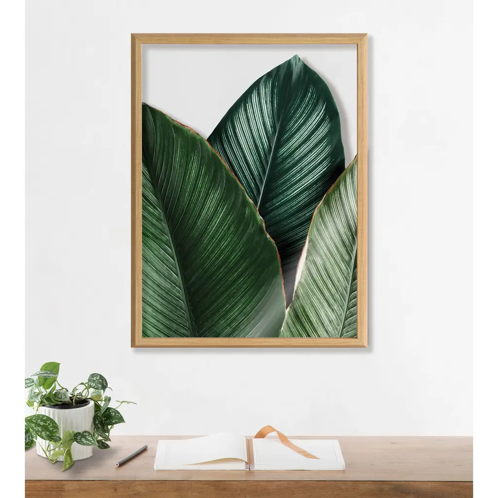 This beautiful botanical art brings an aura of freshness and nature to any room of your home. Framed in the USA in Waunakee, Wisconsin, this glass art will be a pleasure to look at every day in your living room, bedroom, nursery, or any room in the home. This art print also makes an excellent gift for birthdays, holidays, or house-warming parties. Printed on glass and framed with a lightweight polystyrene frame, this wall art has two hangers already attached to the back for easy wall display. The outer dimensions are 24 inches by 18 inches. Print Name: "Tropical Palm Leaves".