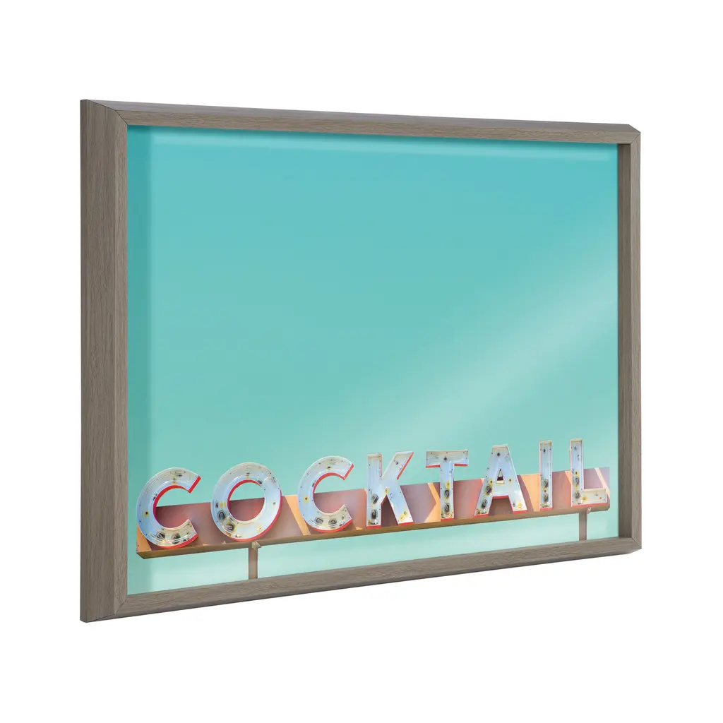 Serve cocktails and spirits in style with this awesome art that fits perfectly in a bar or entertaining space. Framed in a sleek modern frame, this fun, contemporary design is the perfect art piece to add to your home decor collection. Printed and framed in the USA in Waunakee, Wisconsin, this framed floating glass art will be a pleasure to look at every day in your living room, bedroom, nursery, or any room in the home. It even doubles as a beautiful dry erase board! Traditional dry erase boards stain over time and become worn within a few uses, while you can use a glass dry-erase board over and over without wearing out. Just wipe clean with an eraser or damp cloth. This art print also makes an excellent gift for a birthday, holiday, or house-warming. Printed on glass and framed with a lightweight polystyrene frame, this colorful art has two hangers already attached for easy wall display. The outer dimensions are 18 inches wide by 24 inches tall. Print Name: "Cocktail Hour"