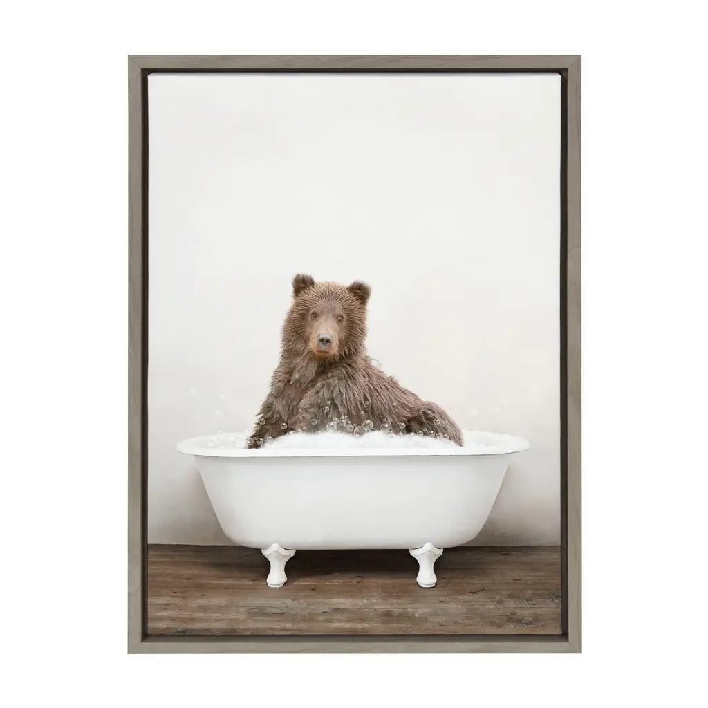 Make a bold impression on your house guests with this whimsical animal art piece by artist Amy Peterson. With its sleek modern frame, this fun, contemporary design is the perfect art piece to add to your home decor collection. Framed in the USA in Waunakee, Wisconsin, this floating canvas art will be a pleasure to look at every day in your living room, bedroom, nursery, or any room in the home. This art print also makes an excellent gift for birthdays, holidays, or house-warming parties. Printed on gallery-wrapped canvas and framed with a lightweight polystyrene frame, this wall art is easy to display on the wall. The outer dimensions are 18 inches by 24 inches by 1.6 inches. Print Name: "Stacked Owls in Rustic Bath"