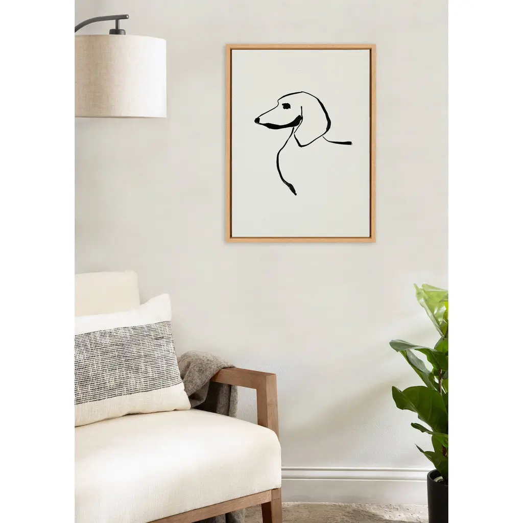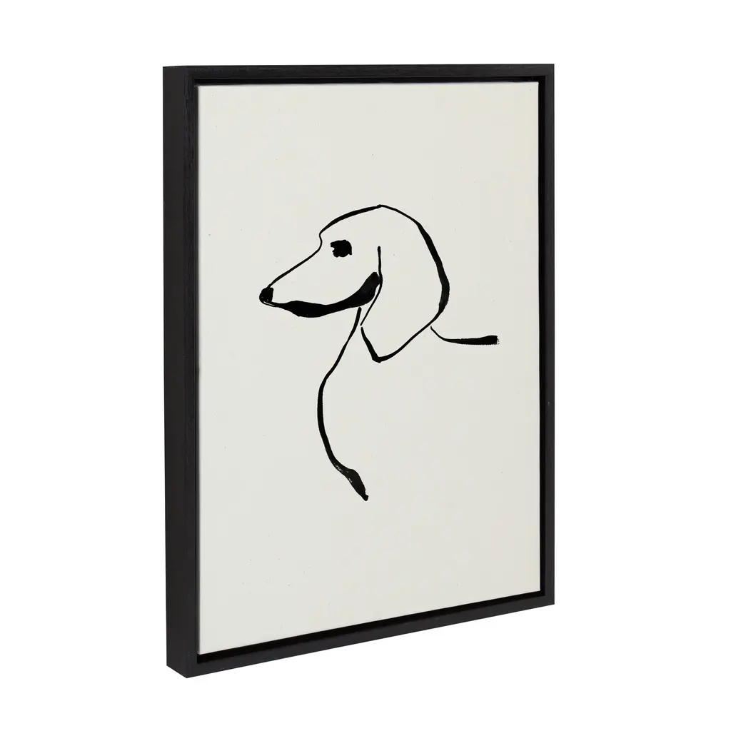 The charming, simple nature of this lovely dog portrait by Teju Reval of SnazzyHues gives you a refined animal artwork that will definitely turn some heads. This lovely charcoal drawing accent piece would serve as a marvelous addition to any animal lover's home. Framed in the USA in Waunakee, Wisconsin, this modern floating canvas art is sure to bring joy to your space. Our design team curates art that will fit perfectly in any room of your home. Showcase this art in your living room, bedroom, home office, kitchen, bathroom, nursery, or anywhere you want to bring a little beauty and charm to your walls. Specializing in home décor, we are continually bringing timeless works of art for the traditional decorator as well as trend-forward pieces for that eclectic art lover. Our high-quality framed canvas art also makes excellent gifts for birthdays, holidays, or housewarming parties. Printed on gallery-wrapped canvas and framed with a simple gallery frame this wall art is easy to display on the wall and will match with any décor style. The outer dimensions are 18 inches by 24 inches by 1.6 inches. Print Name: "1023 Dachshund"