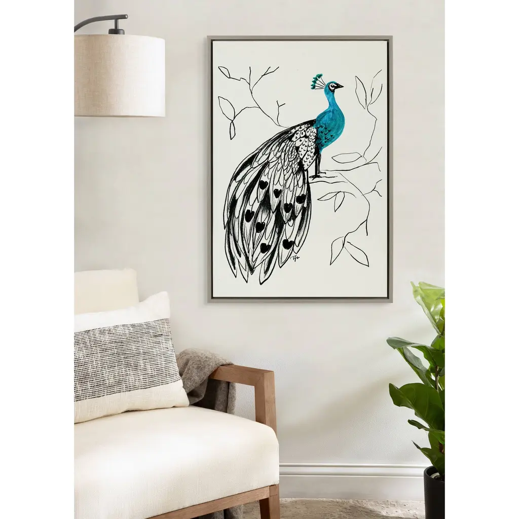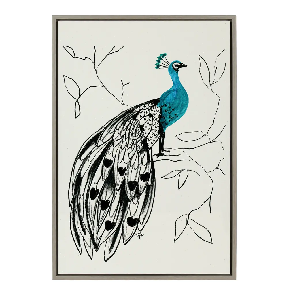 Kate And Laurel Sylvie 658 Peacock Framed Canvas By Teju Reval - 23x33 - Plastic - Grey