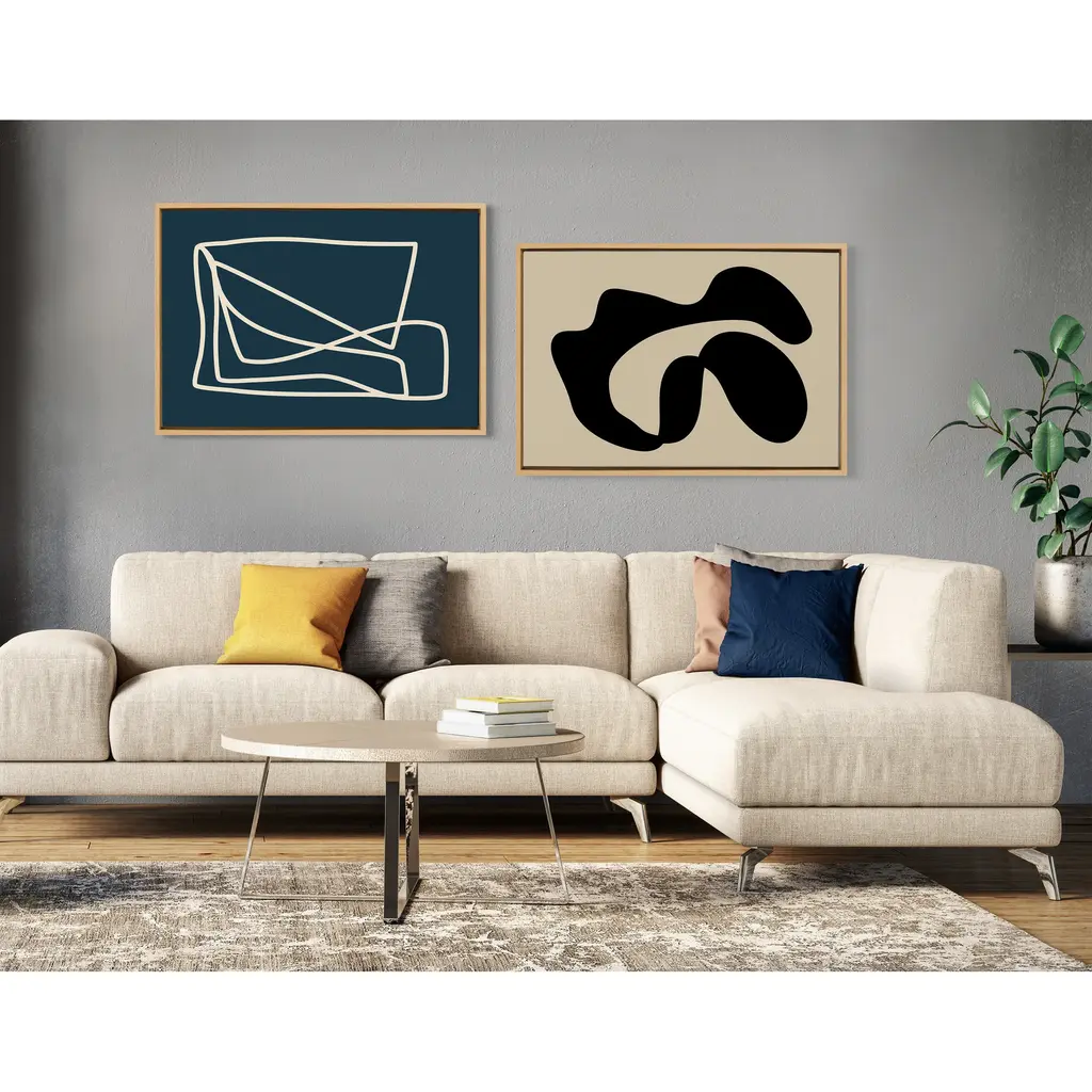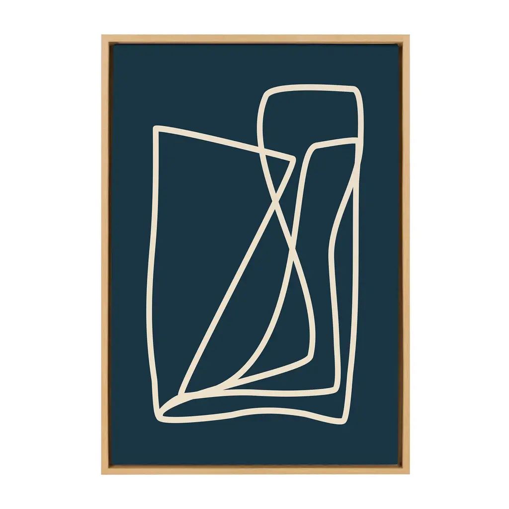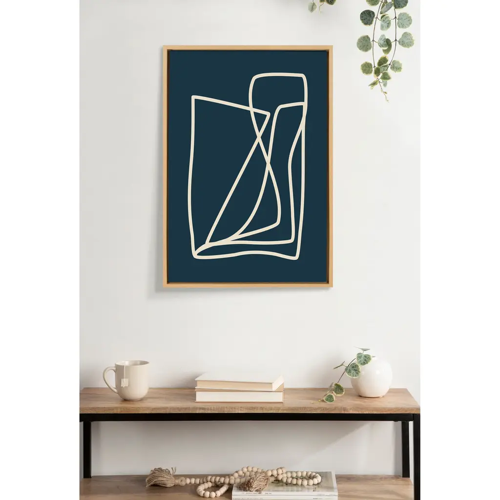Decorate your home with a chic, mid-century-inspired art print that emphasizes clean lines and a subtle, muted color palette. Framed in the USA in Waunakee, Wisconsin, this floating canvas art will be a pleasure to look at every day in your living room, bedroom, office, or any room in the home. This art print also makes an excellent gift for birthdays, holidays, or house-warming parties. Printed on gallery-wrapped canvas and framed with a lightweight polystyrene frame, this wall art has two hangers already attached to the MDF back for easy wall display. The outer dimensions are 33 inches by 23 inches by 1.6 inches. Print Name: "Abstract Lines in Blue"