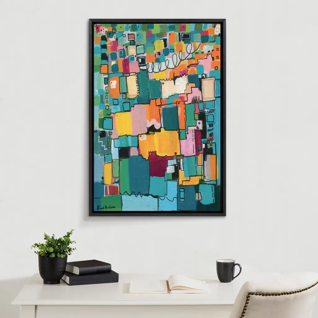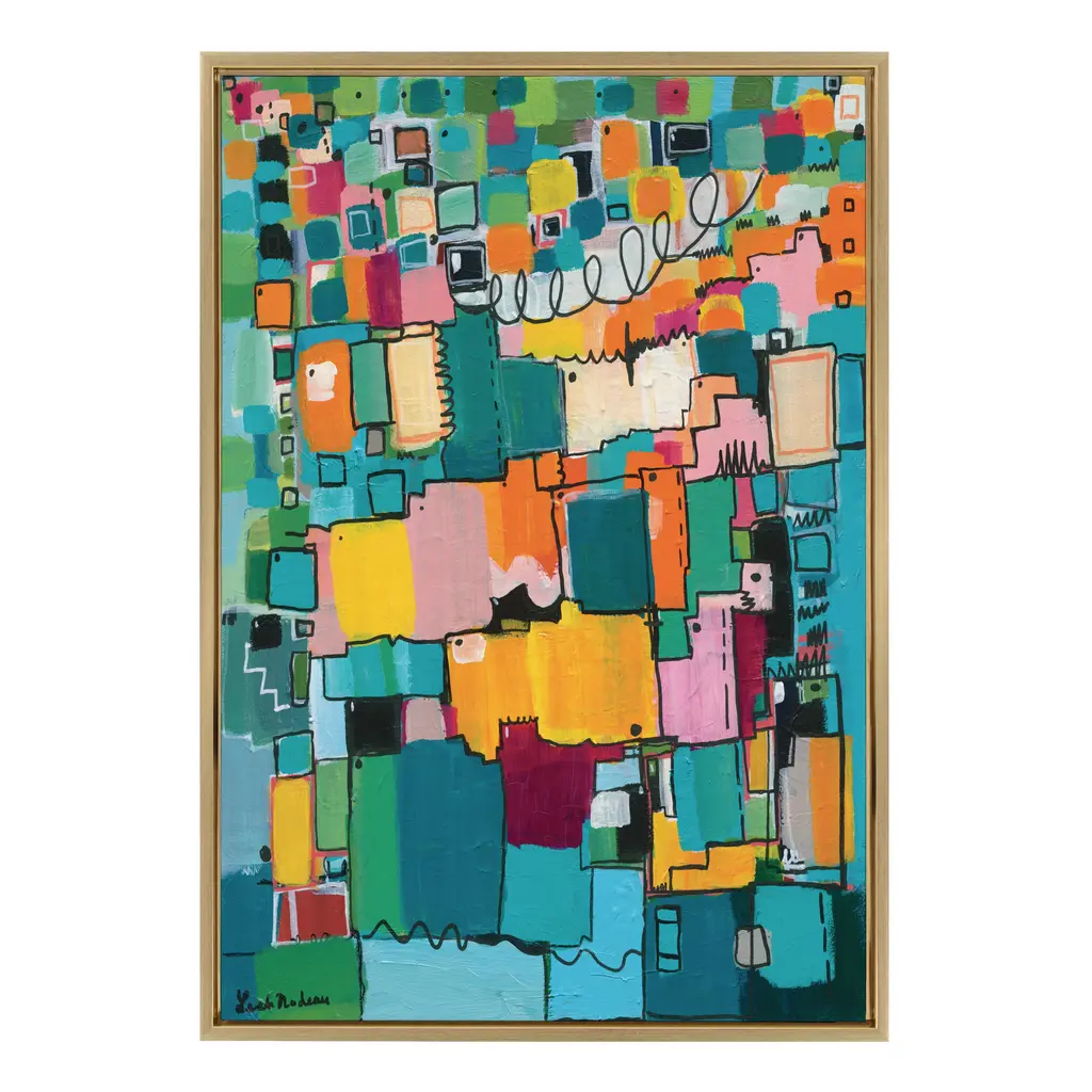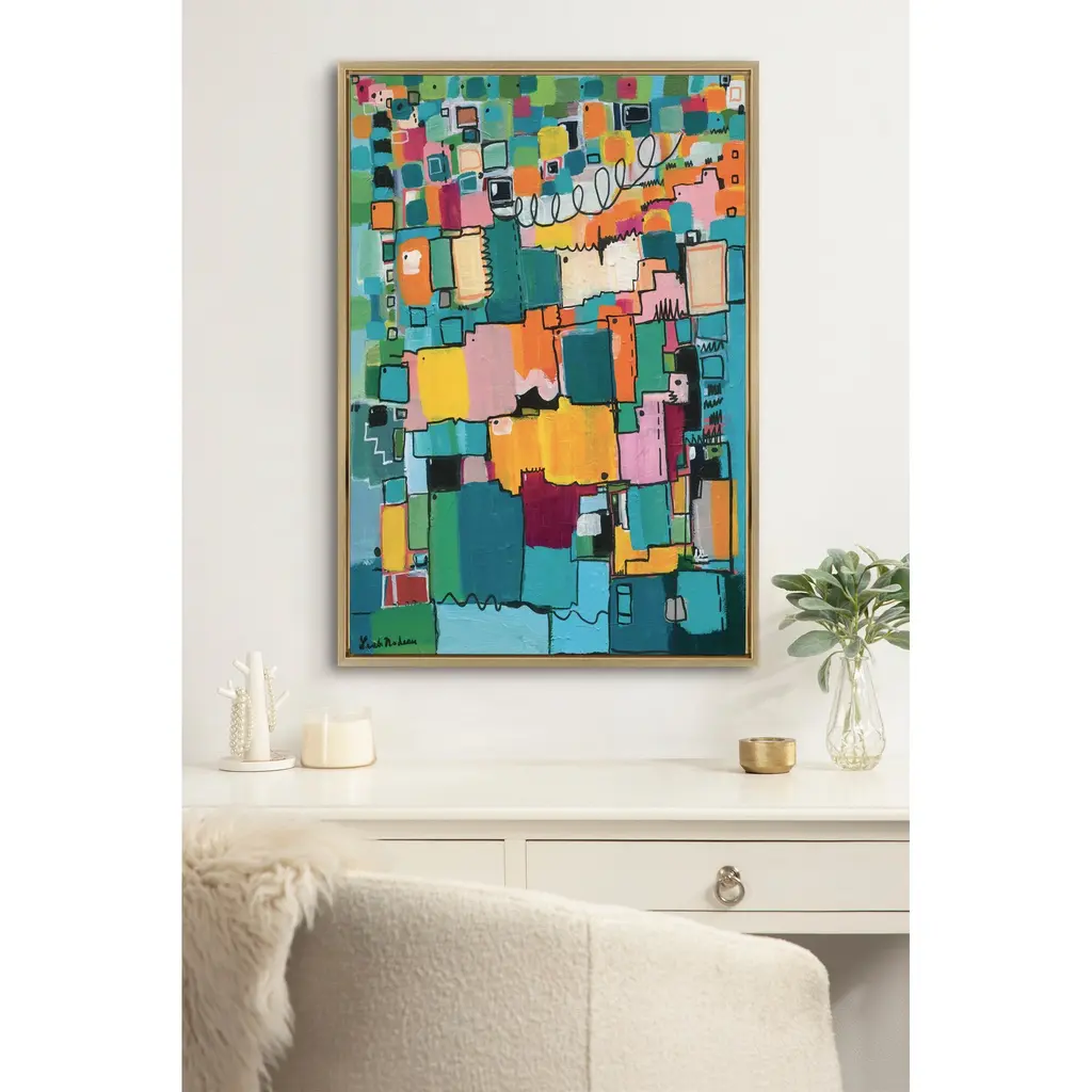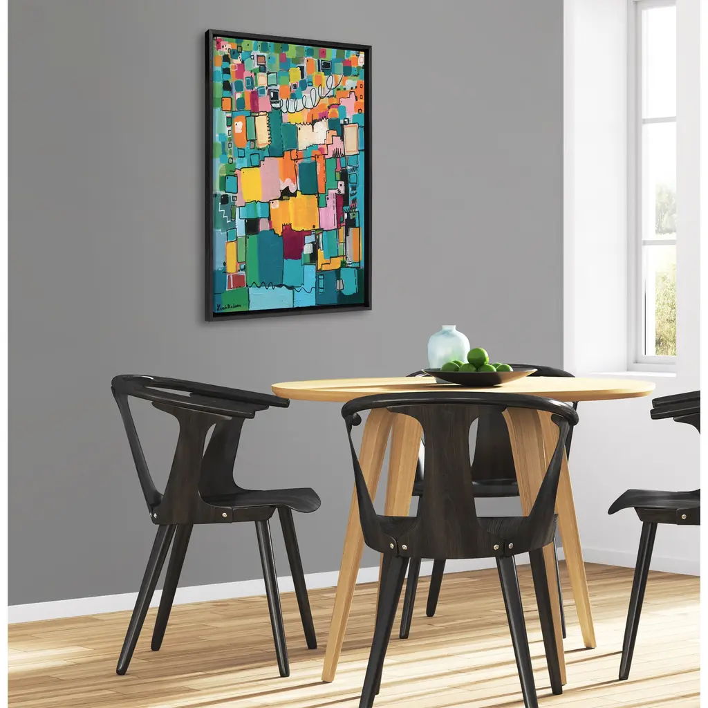 Cast your space in a beautiful burst of color with this delightful abstract art print. Framed in the USA in Waunakee, Wisconsin, this floating canvas art will be a pleasure to look at every day in your living room, bedroom, office, or any room in the home. This art print also makes an excellent gift for birthdays, holidays, or house-warming parties. Printed on gallery-wrapped canvas and framed with a lightweight polystyrene frame, this wall art has two hangers already attached to the MDF back for easy wall display. The outer dimensions are 33 inches by 23 inches by 1.6 inches. Print Name: "Afternoon Delight"