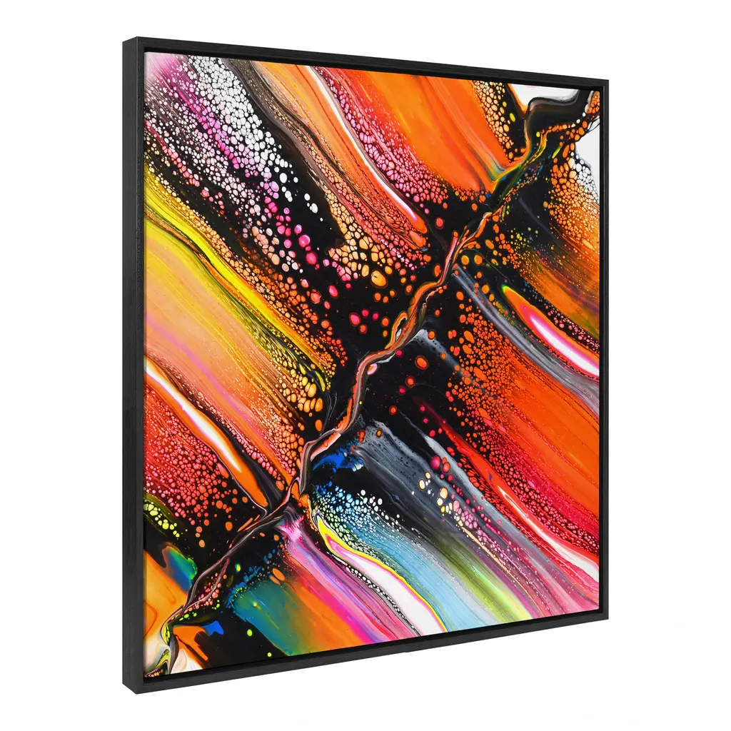 Transport yourself with this transcendent abstract colorful artwork by Xizhou Xie. The bright distortion would fill your space with unique pops of color. Framed in the USA in Waunakee, Wisconsin, this modern floating canvas art is sure to bring joy to your space. Our design team curates art that will fit perfectly in any room of your home. Showcase this art in your living room, bedroom, home office, kitchen, bathroom, nursery, or anywhere you want to bring a little beauty and charm to your walls. Specializing in home décor, we are continually bringing timeless works of art for the traditional decorator as well as trend-forward pieces for that eclectic art lover. Our high-quality framed canvas art also makes excellent gifts for birthdays, holidays, or housewarming parties. Printed on gallery-wrapped canvas and framed with a simple gallery frame this wall art is easy to display on the wall and will match with any décor style. The outer dimensions are 30 inches by 30 inches by 1.6 inches. Print Name: "Aloha"