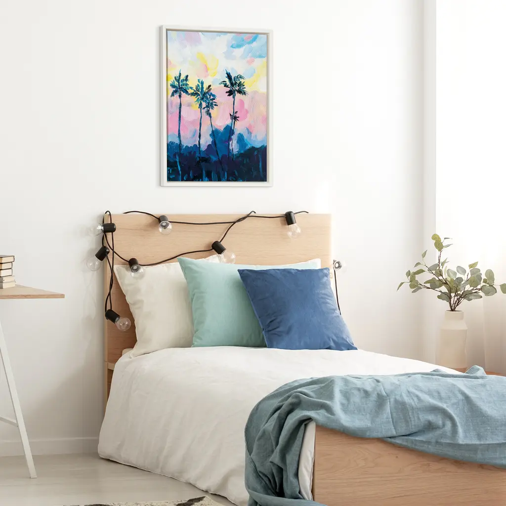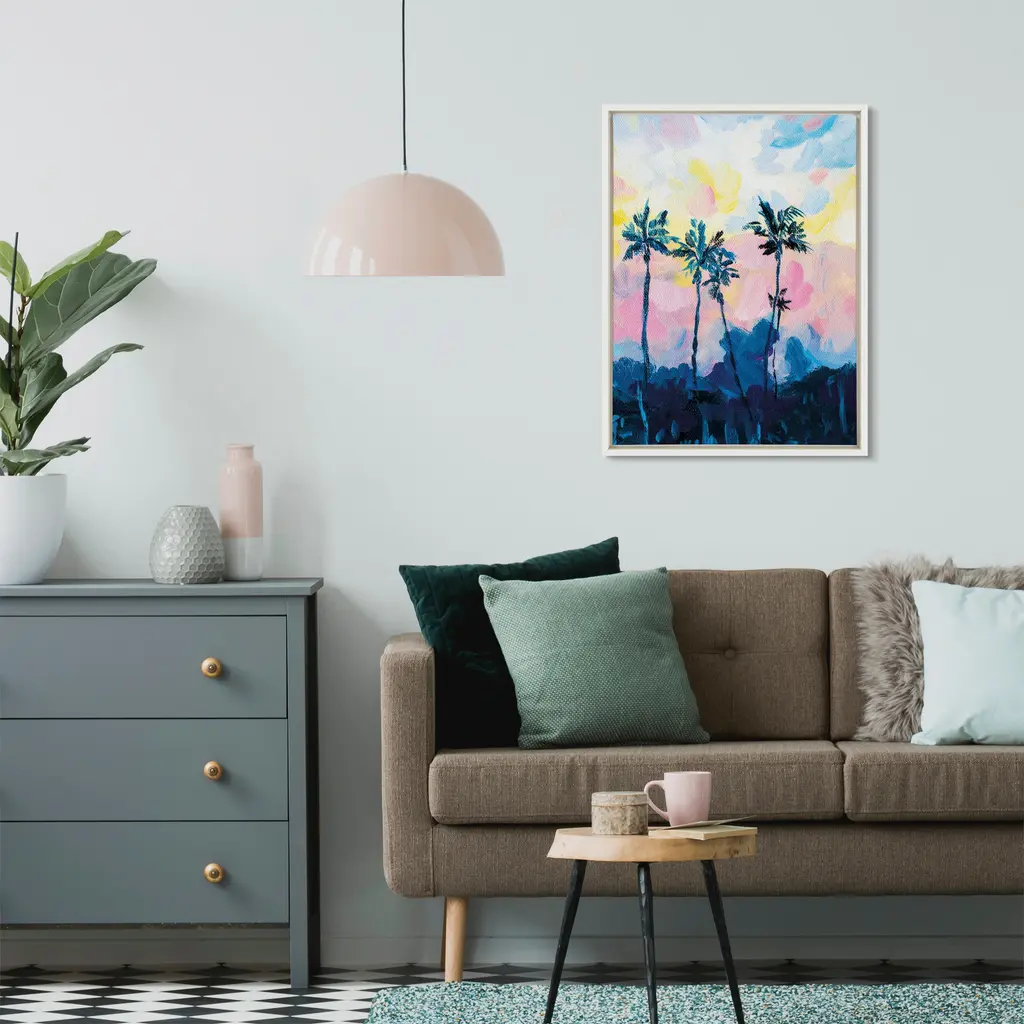 Get lost in the colors left in the sky by the fading sun in this tropical and coastal art print for your wall. Framed in the USA in Waunakee, Wisconsin, this floating canvas art will be a pleasure to look at every day in your living room, bedroom, office, or any room in the home. This art print also makes an excellent gift for birthdays, holidays, or house-warming parties. Printed on gallery-wrapped canvas and framed with a lightweight polystyrene frame, this wall art has two hangers already attached to the MDF back for easy wall display. The outer dimensions are 24 inches by 18 inches by 1.63 inches. Print Name: "Apache Junction Sunset"