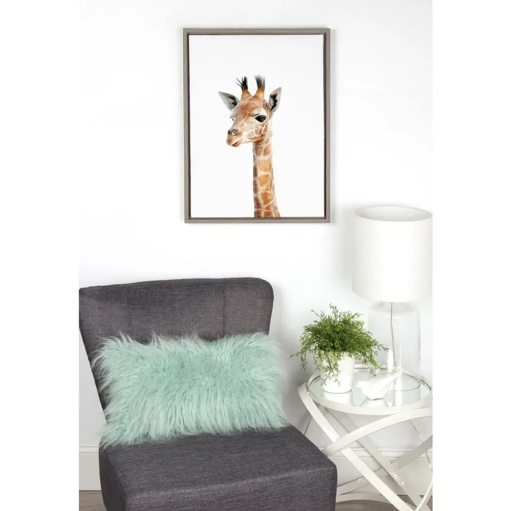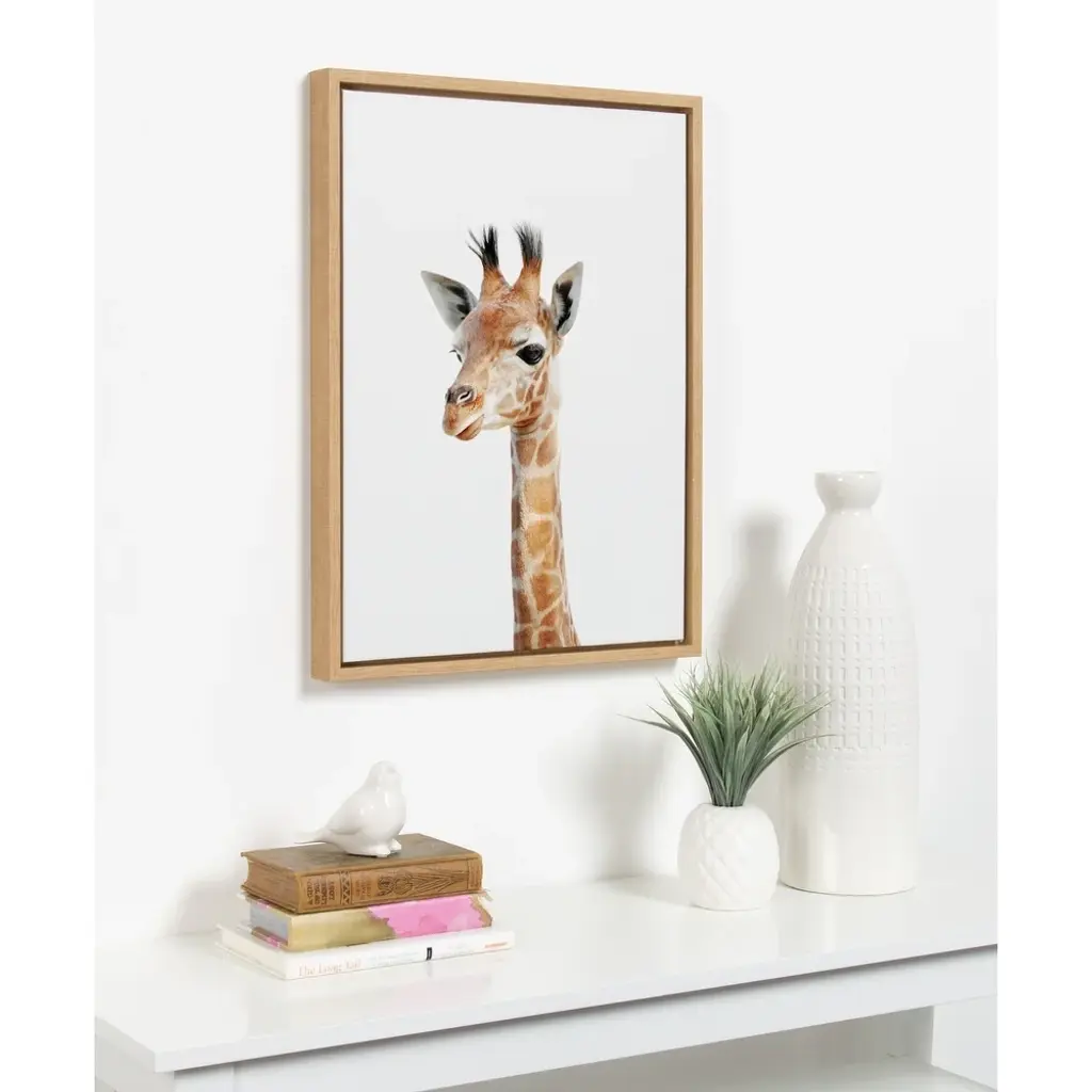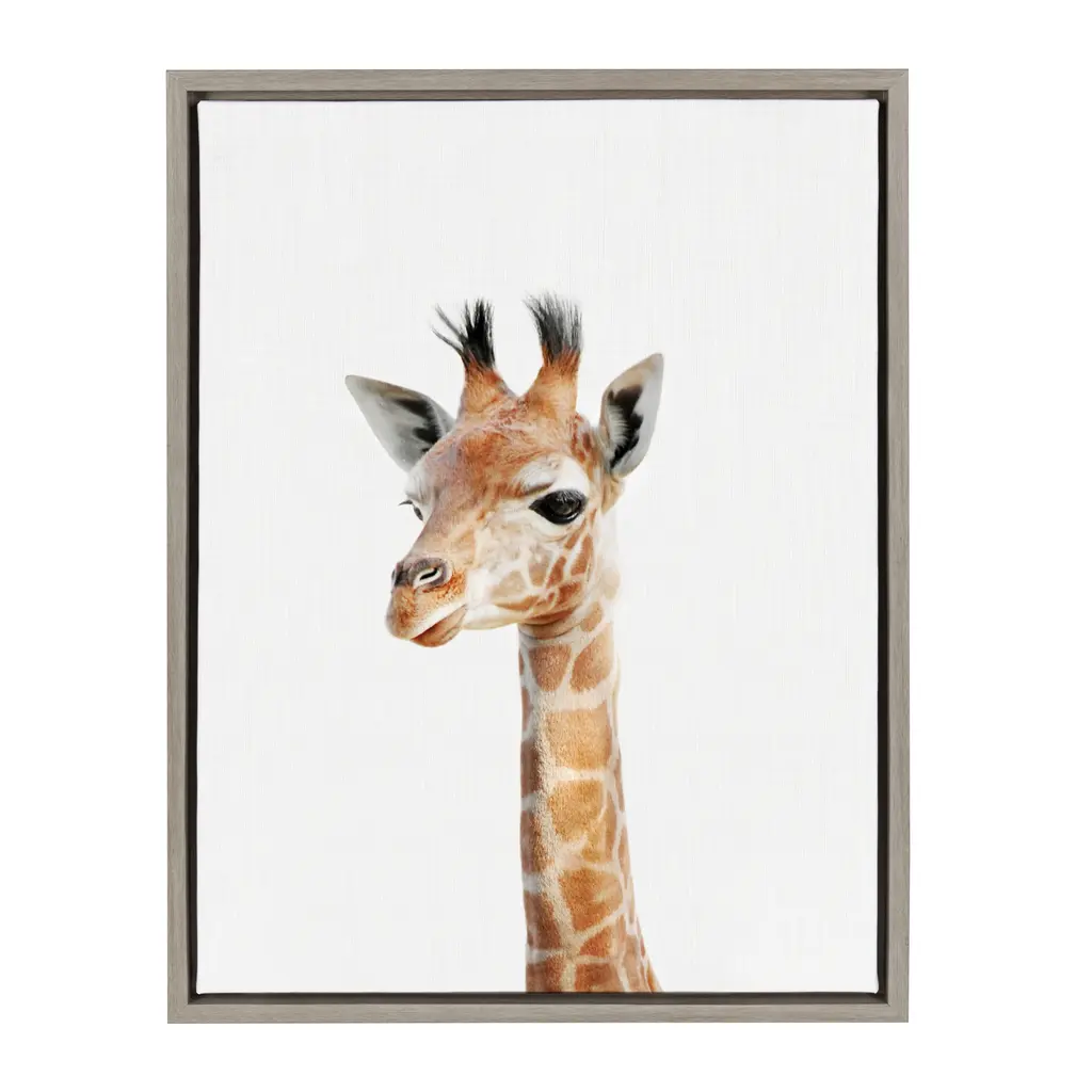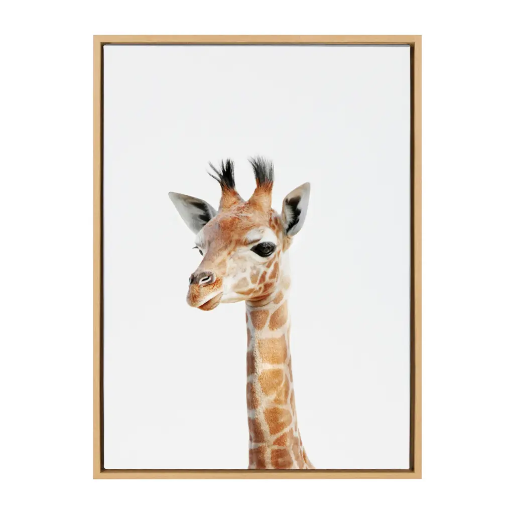 Add some whimsical charm to your nursery, living room, or office with this adorable portrait of a baby giraffe. The floating, gallery-wrapped canvas design adds a three-dimensional pop, while the minimalist polystyrene frame has contemporary style. Thanks to the simple design and included hardware, this ready-to-hang art is easy to install.