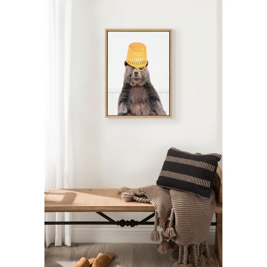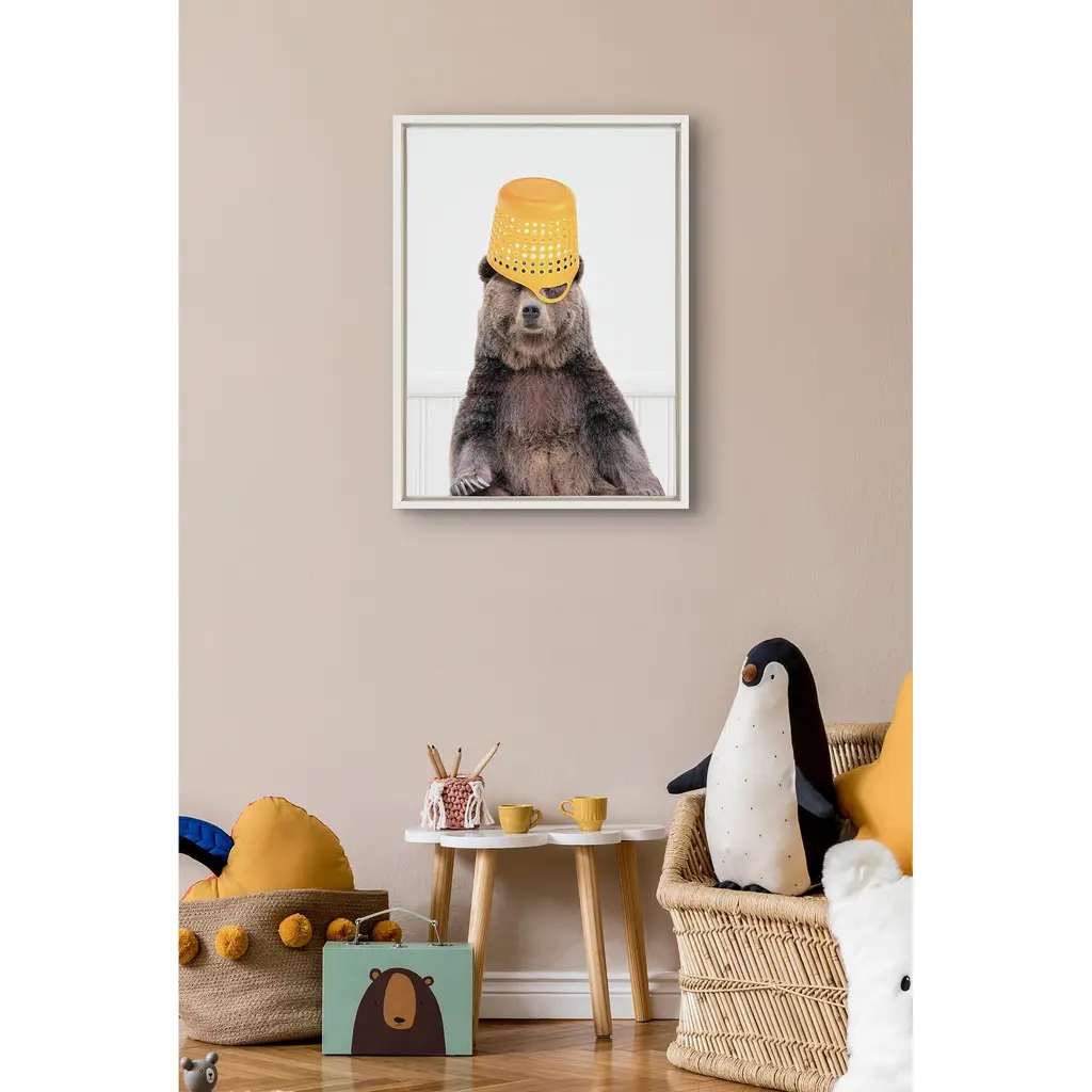 Kate And Laurel Sylvie Basket Case Bear Framed Canvas By Amy Peterson - 18x24 - Plastic - White