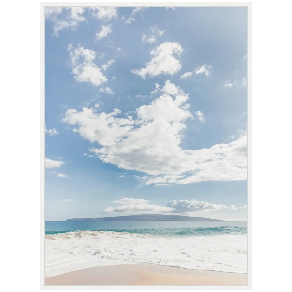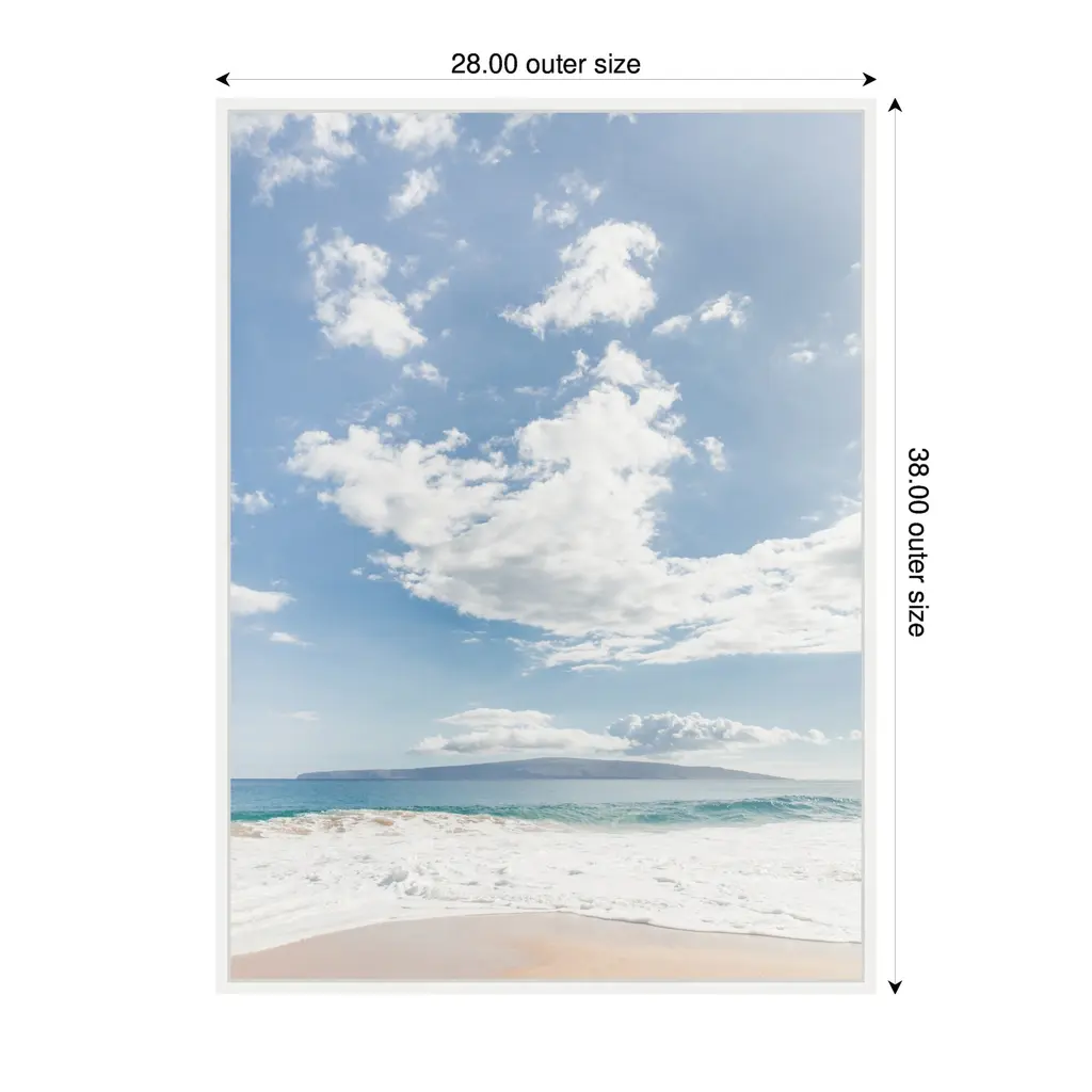 Art has a way of transforming an entire space's energy with its simple presence. This beautiful beach-themed art print captures the imagination and brings you to the zen zone with its sky blue theme. Framed in the USA in Waunakee, Wisconsin, this floating canvas art will be a pleasure to look at every day in your living room, bedroom, office, or any room in the home. This art print also makes an excellent gift for birthdays, holidays, or house-warming parties. Printed on gallery-wrapped canvas and framed with a lightweight polystyrene frame, this wall art has two hangers already attached to the MDF back for easy wall display. The outer dimensions are 33 inches by 23 inches by 1.6 inches. Print Name: "Beach"