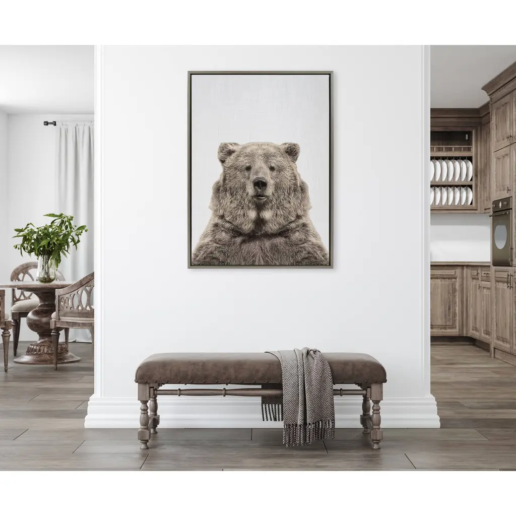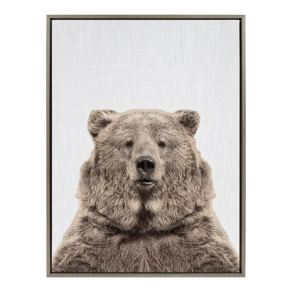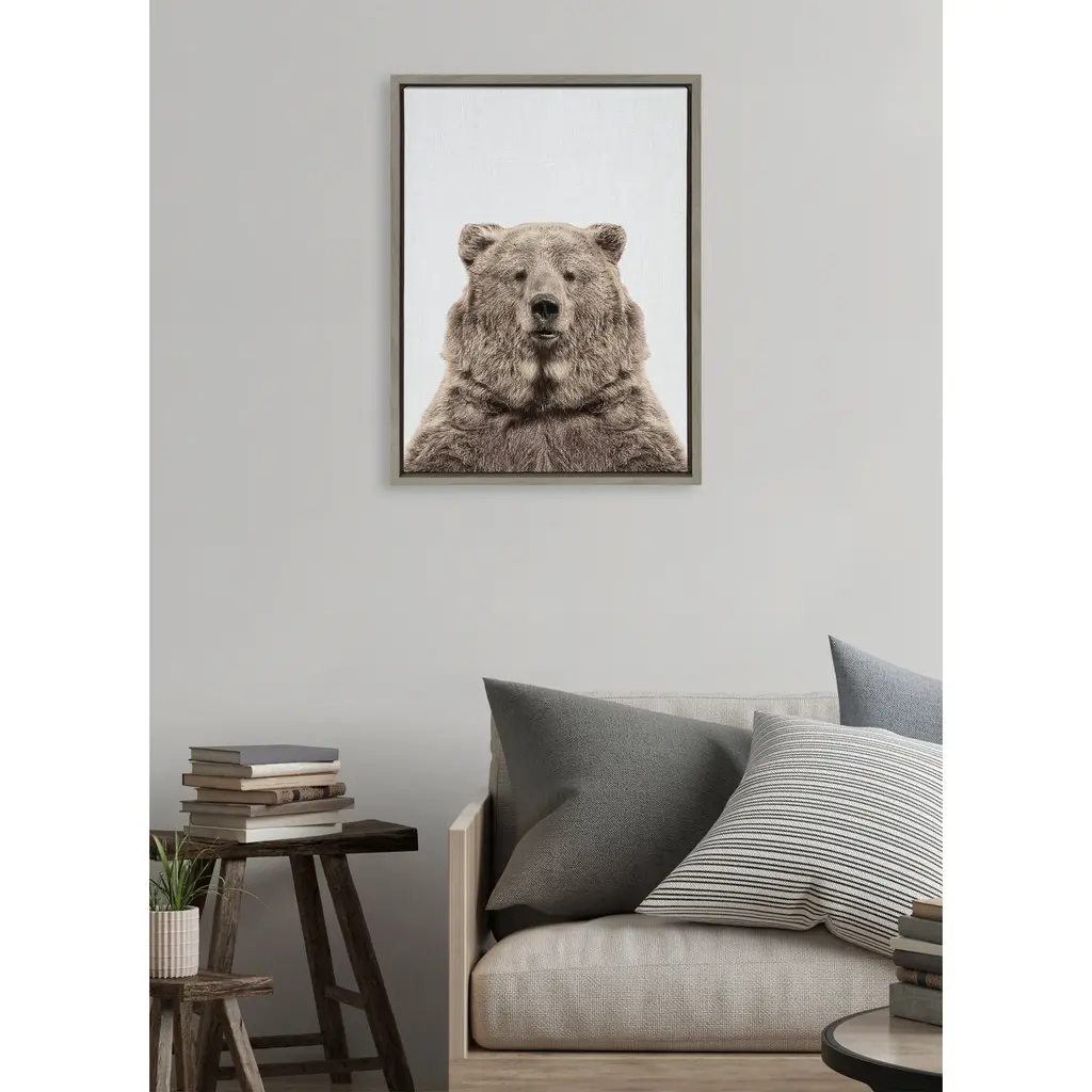 Kate And Laurel Sylvie Bear European Color Framed Canvas By Simon Te - 28x38 - Plastic - Grey