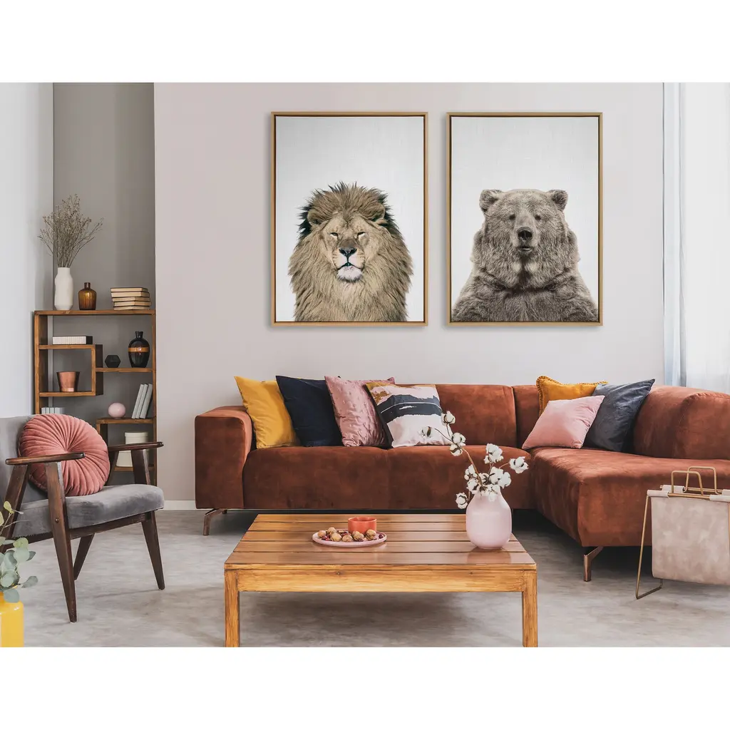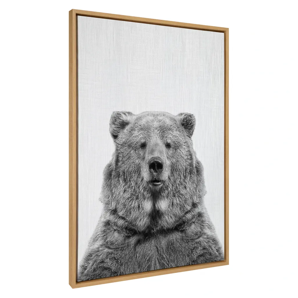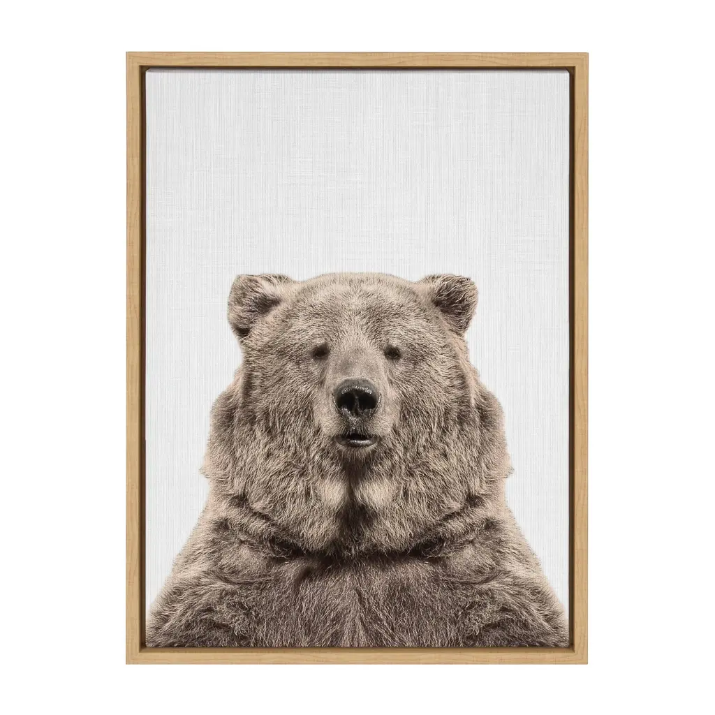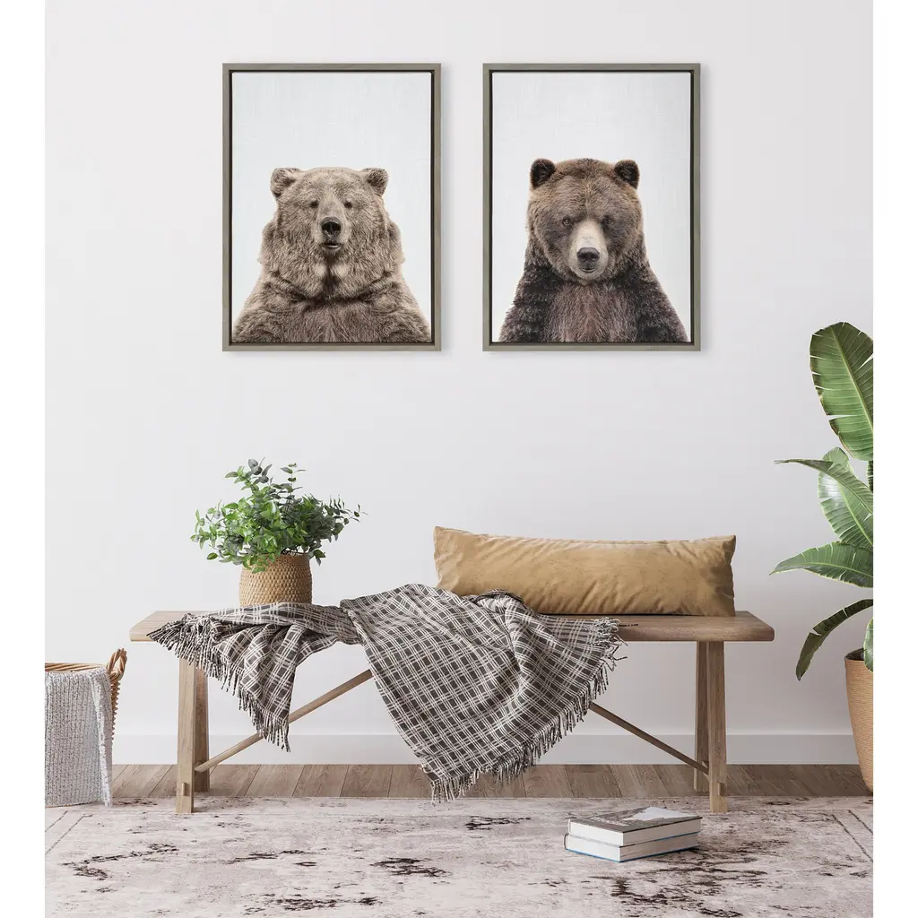 Kate And Laurel Sylvie Bear European Color Framed Canvas By Simon Te - 28x38 - Plastic - Grey
