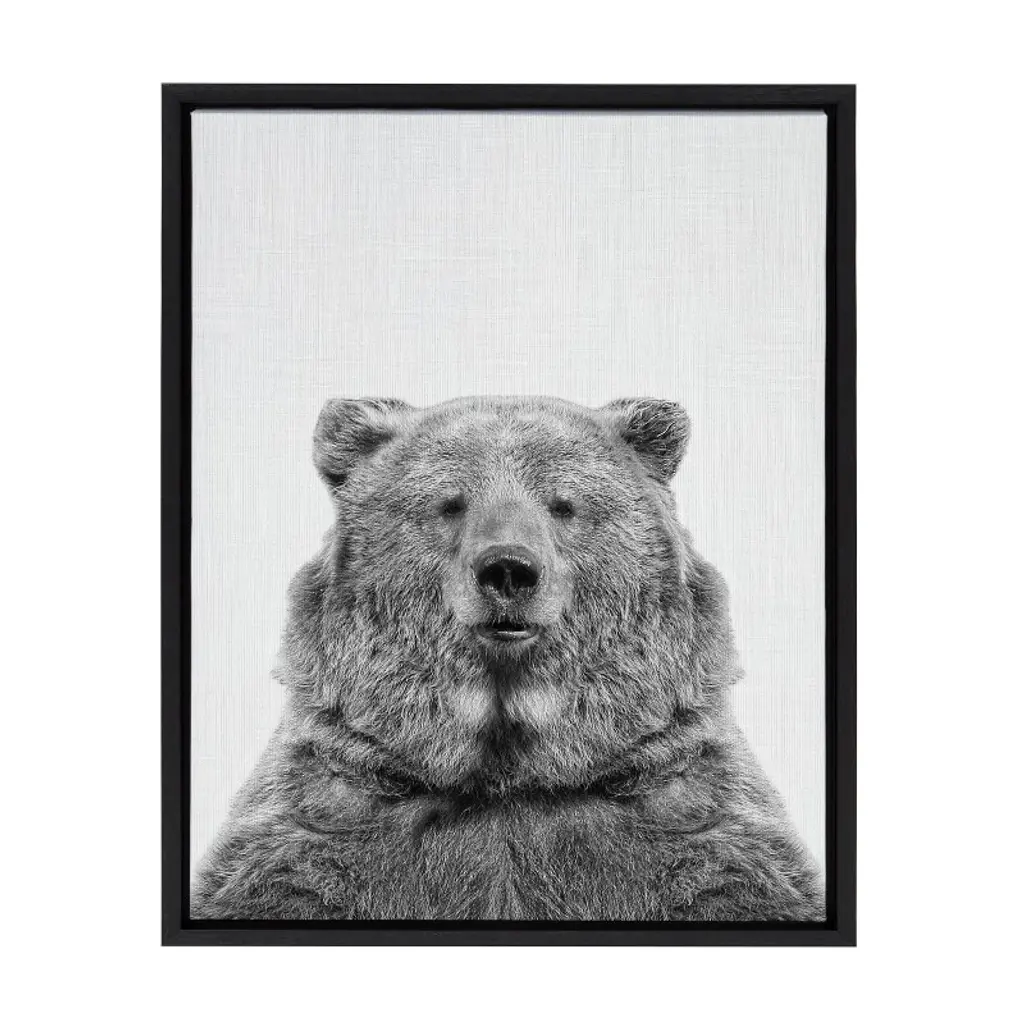 Highlight your affinity for nature and animals with this framed canvas wall art featuring a content forest bear. Neutral colors blend well with most decor schemes, and this wall art features two sawtooth hangers for convenient hanging. A high-quality polystyrene frame keeps the print protected for lasting enjoyment.