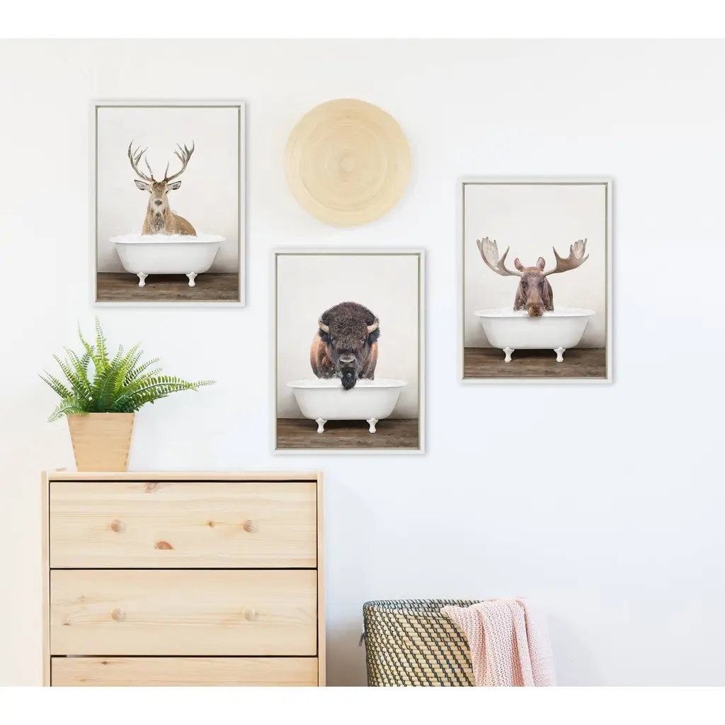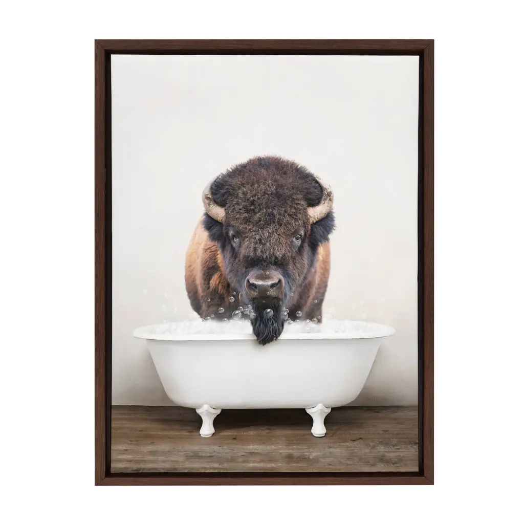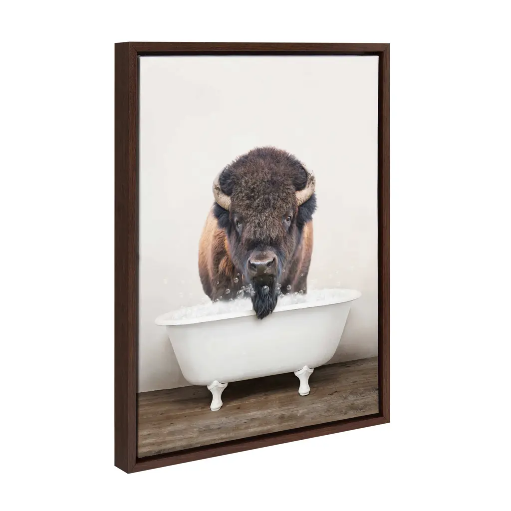 Kate And Laurel Sylvie Bison Bubble Bath Framed Canvas By Amy Peterson - Natural - 18x24