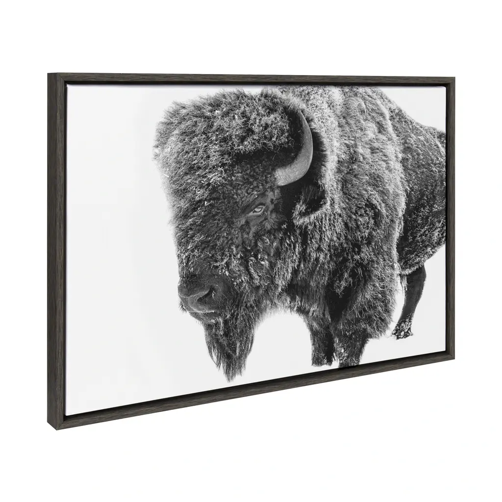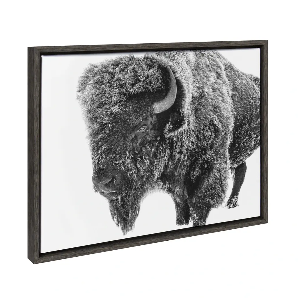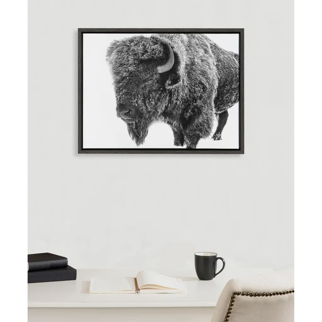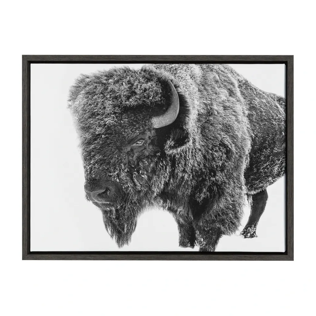 Kate And Laurel Sylvie Bison In Snow Black And White Framed Canvas By Amy Peterson Art Studio - 18x24 - Grey