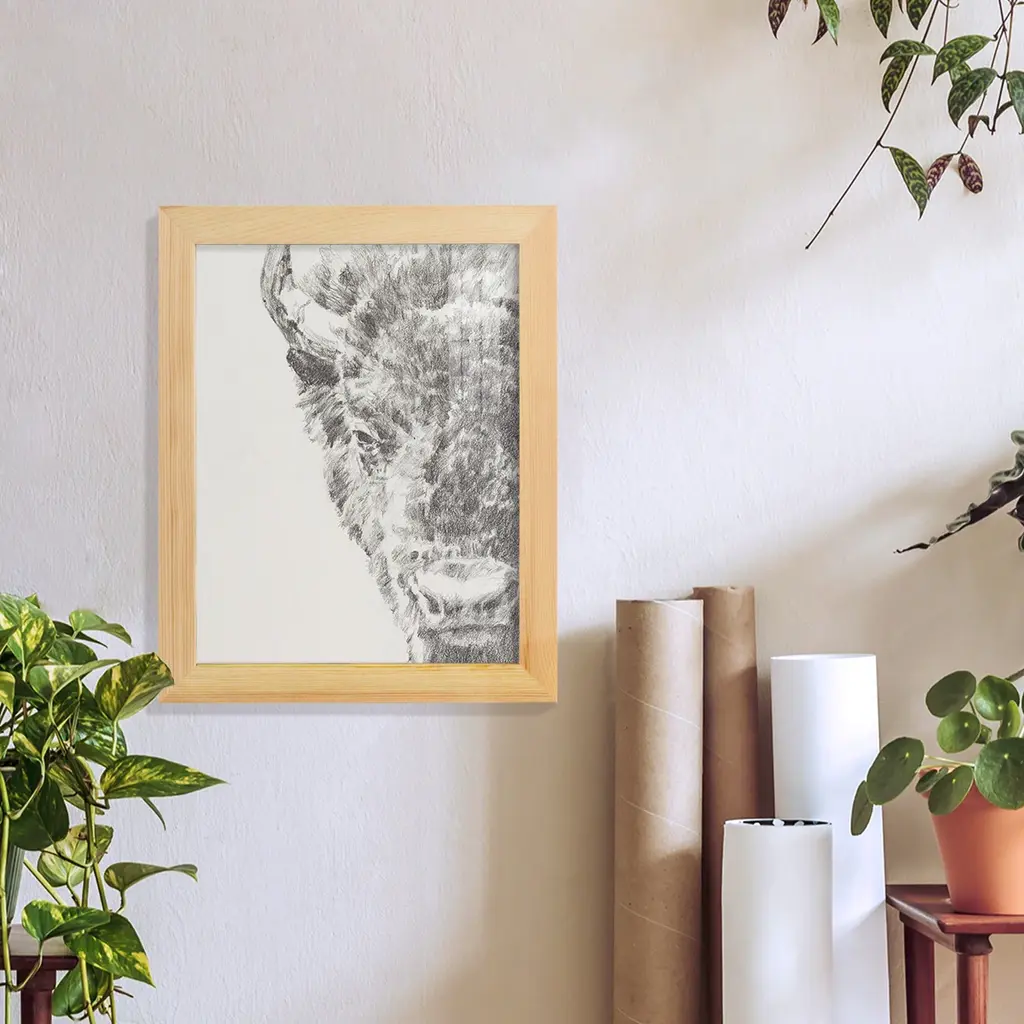 Provide your space with some whimsical appeal with this prairie bison portrait. This lovely, light piece by Amy Peterson Art Studio is perfect for any animal lover. Framed in the USA in Waunakee, Wisconsin, this floating canvas art will be a pleasure to look at every day in your living room, bedroom, nursery, or any room in the home. This art print also makes an excellent gift for birthdays, holidays, or house-warming parties. Printed on gallery-wrapped canvas and framed with a lightweight polystyrene frame, this wall art is easy to display on the wall. The outer dimensions are 18 inches by 24 inches by 1.6 inches. Print Name: "Bison Profile"
