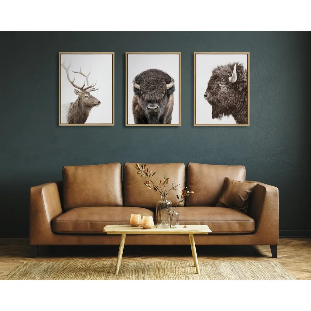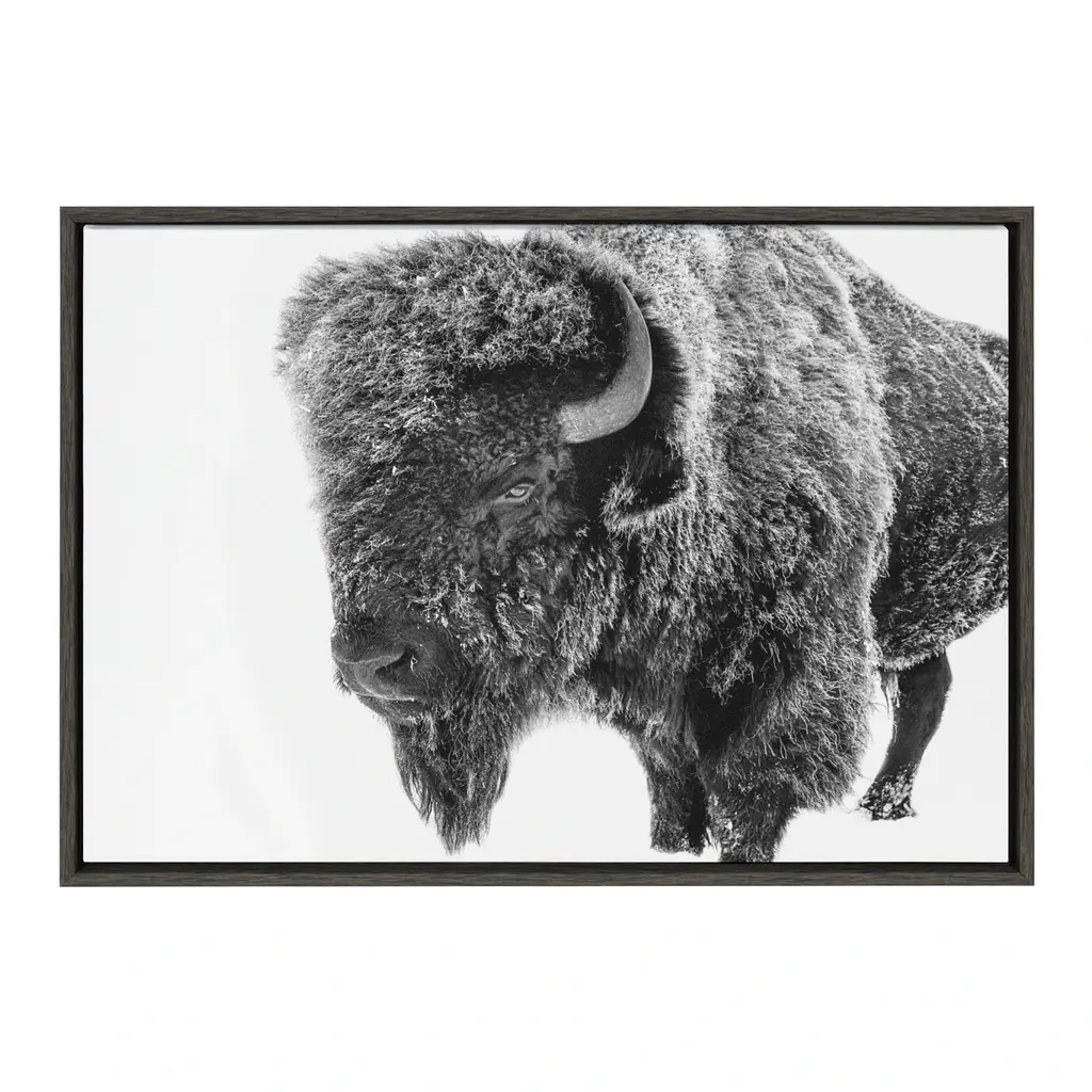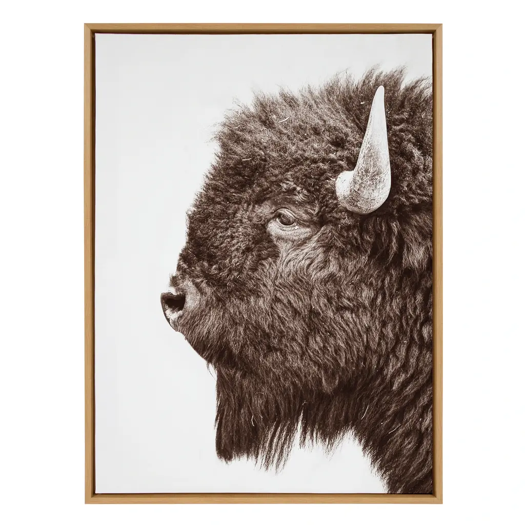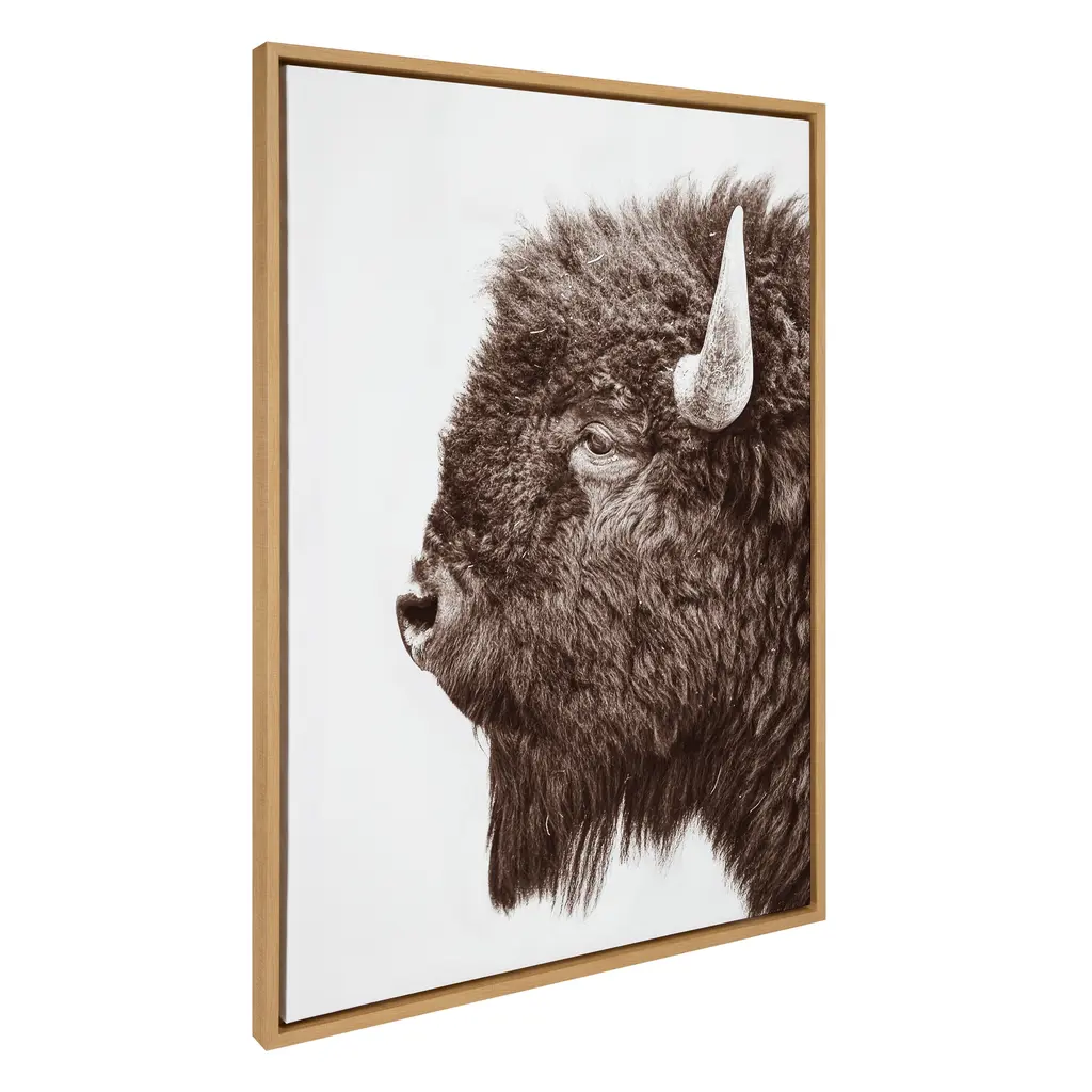 Kate And Laurel Sylvie Bison Profile Framed Canvas By Amy Peterson Art Studio - 18x24 - Natural
