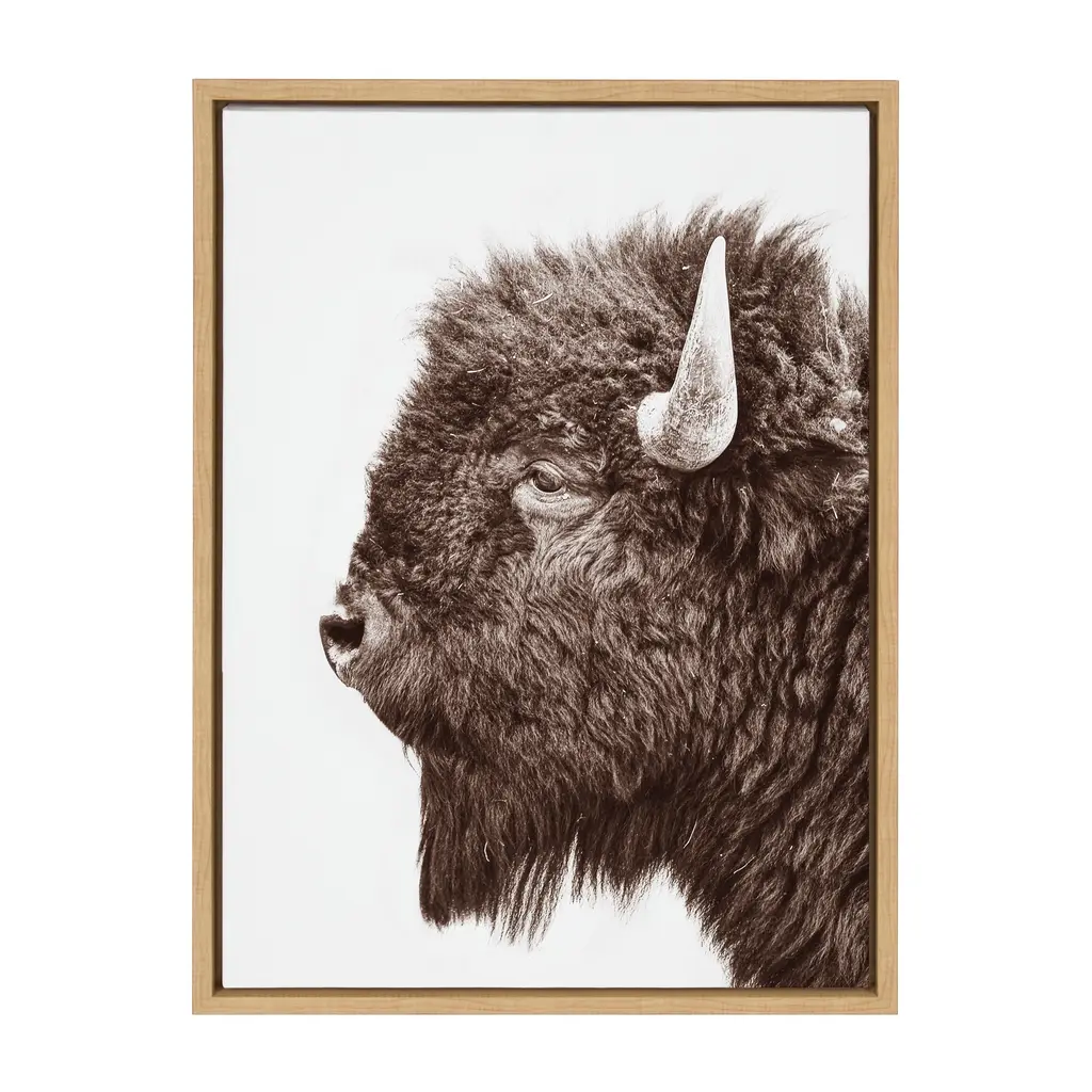Kate And Laurel Sylvie Bison Profile Framed Canvas By Amy Peterson Art Studio - 23x33 - Natural