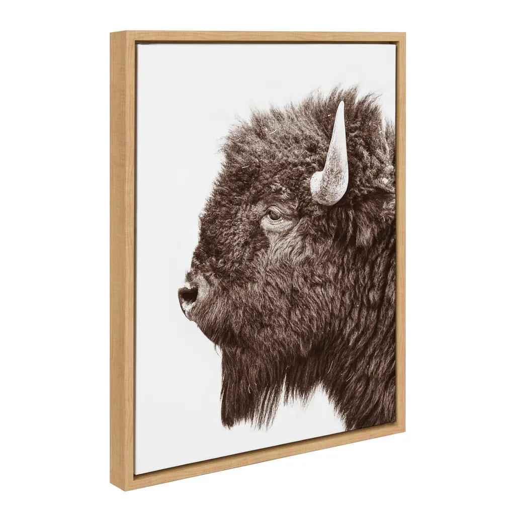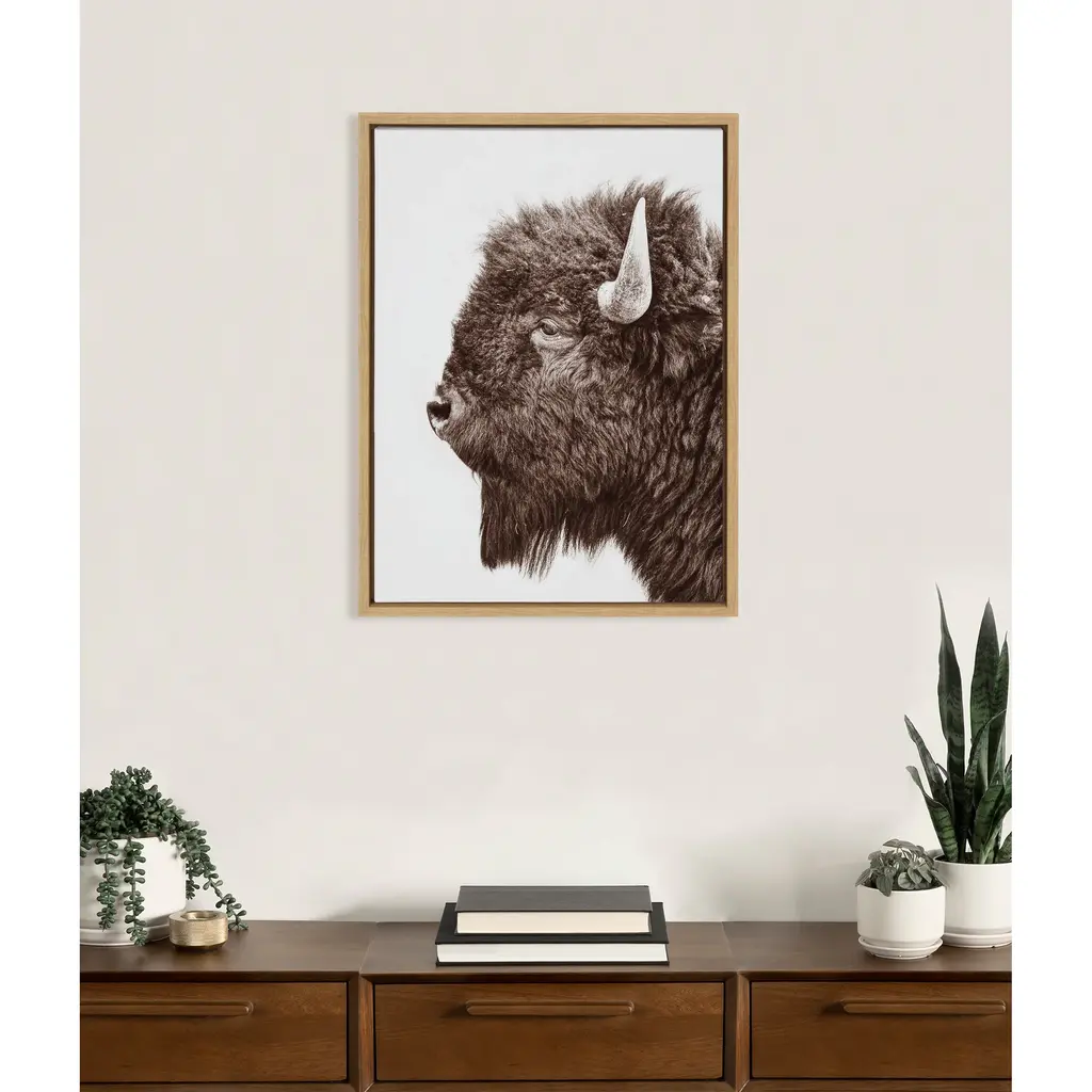 Kate And Laurel Sylvie Bison Profile Framed Canvas By Amy Peterson Art Studio - 28x38 - Natural