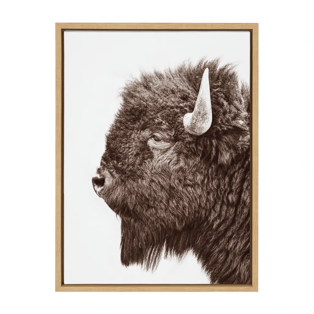 Provide your space with some whimsical appeal with this prairie bison portrait. This lovely, light piece by Amy Peterson Art Studio is perfect for any animal lover. Framed in the USA in Waunakee, Wisconsin, this floating canvas art will be a pleasure to look at every day in your living room, bedroom, nursery, or any room in the home. This art print also makes an excellent gift for birthdays, holidays, or house-warming parties. Printed on gallery-wrapped canvas and framed with a lightweight polystyrene frame, this wall art is easy to display on the wall. The outer dimensions are 18 inches by 24 inches by 1.6 inches. Print Name: "Bison Profile"