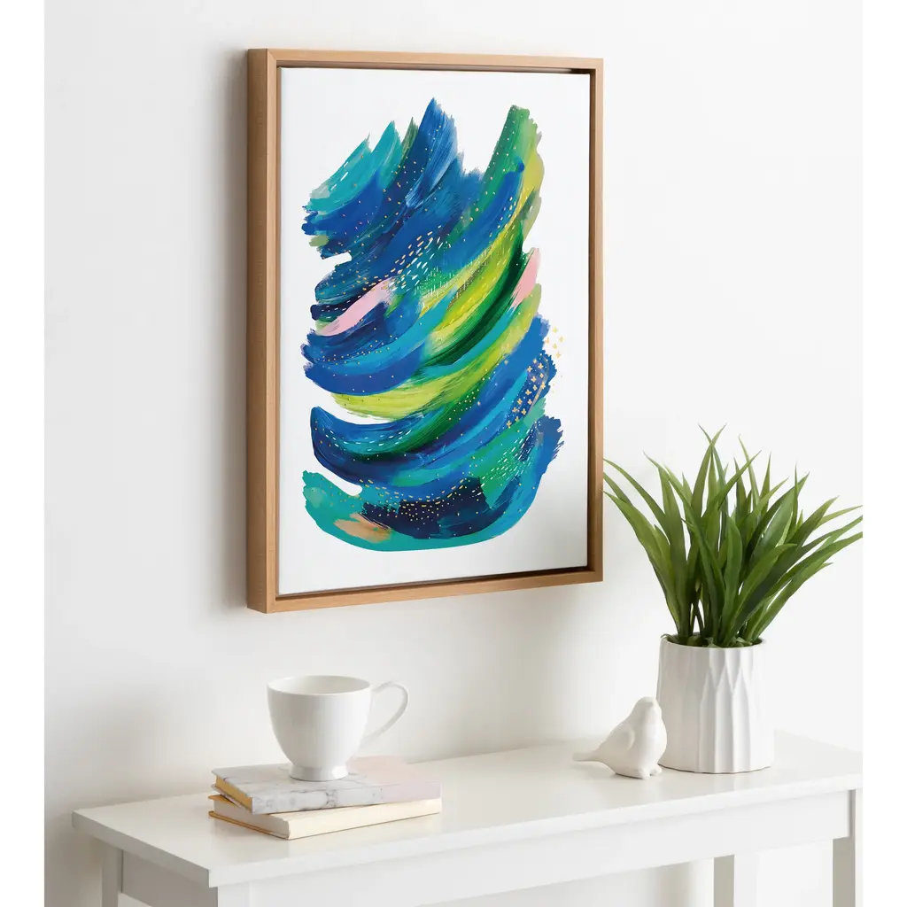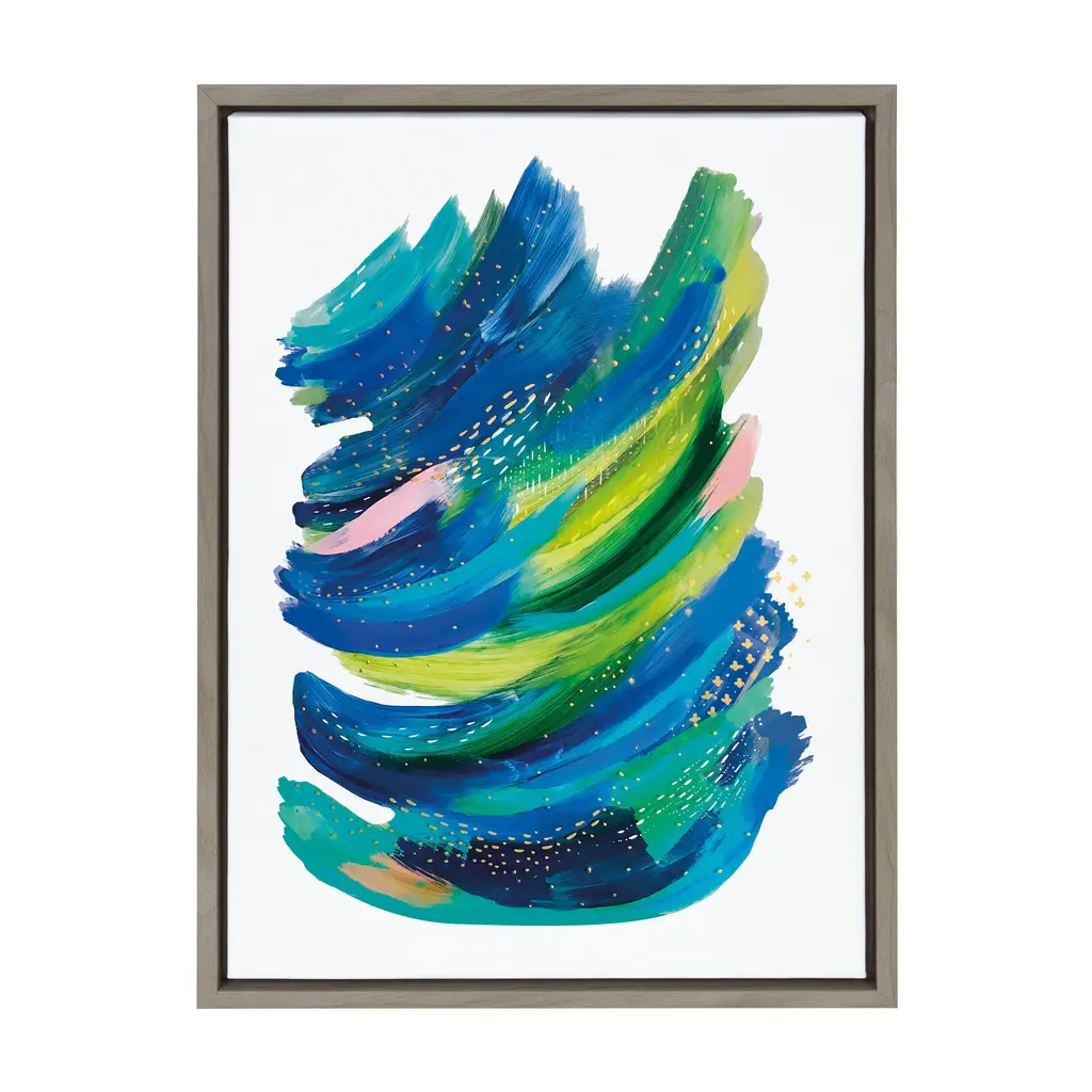 Transform your space with this bright, abstract wall art piece by Jessi Raulet of Ettavee. Its lovely, colorful brushstrokes provide your space with a needed addition of creativity and energy. Framed in the USA in Waunakee, Wisconsin, this floating canvas art will be a pleasure to look at every day in your living room, bedroom, nursery, or any room in the home. This art print also makes an excellent gift for birthdays, holidays, or house-warming parties. Printed on gallery-wrapped canvas and framed with a lightweight polystyrene frame, this wall art is easy to display on the wall. The outer dimensions are 18 inches by 24 inches by 1.6 inches. Print Name: "Bright Abstract 2"