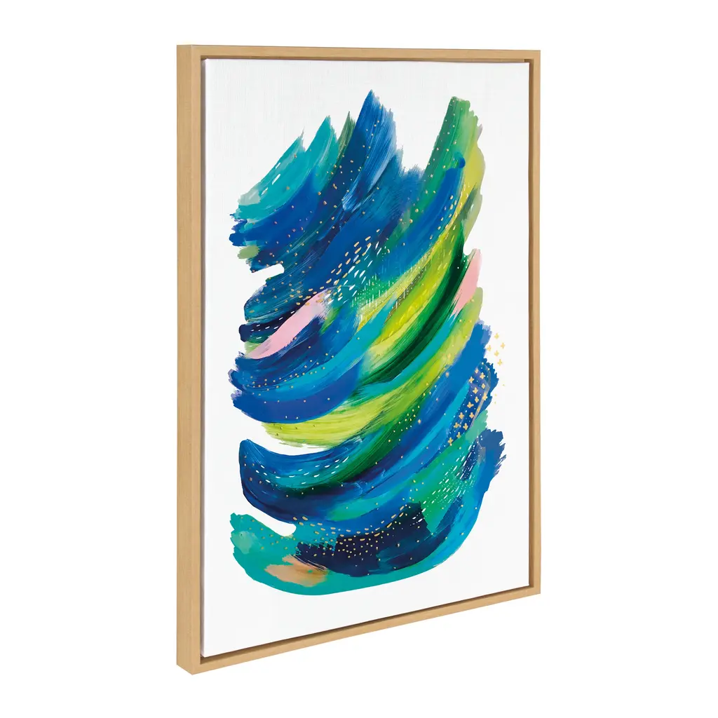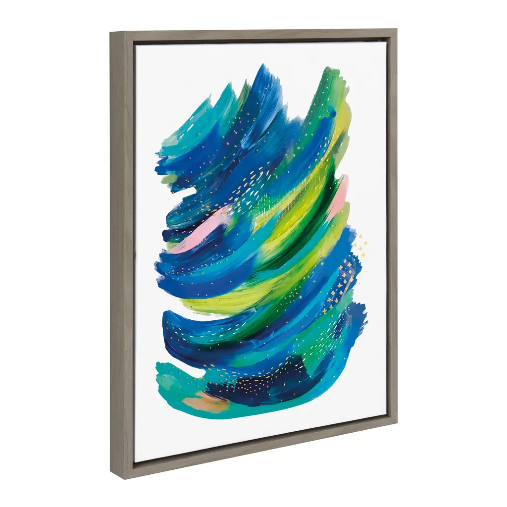 Transform your space with this bright, abstract wall art piece by Jessi Raulet of Ettavee. Its lovely, colorful brushstrokes provide your space with a needed addition of creativity and energy. Framed in the USA in Waunakee, Wisconsin, this floating canvas art will be a pleasure to look at every day in your living room, bedroom, nursery, or any room in the home. This art print also makes an excellent gift for birthdays, holidays, or house-warming parties. Printed on gallery-wrapped canvas and framed with a lightweight polystyrene frame, this wall art is easy to display on the wall. The outer dimensions are 18 inches by 24 inches by 1.6 inches. Print Name: "Bright Abstract 2"