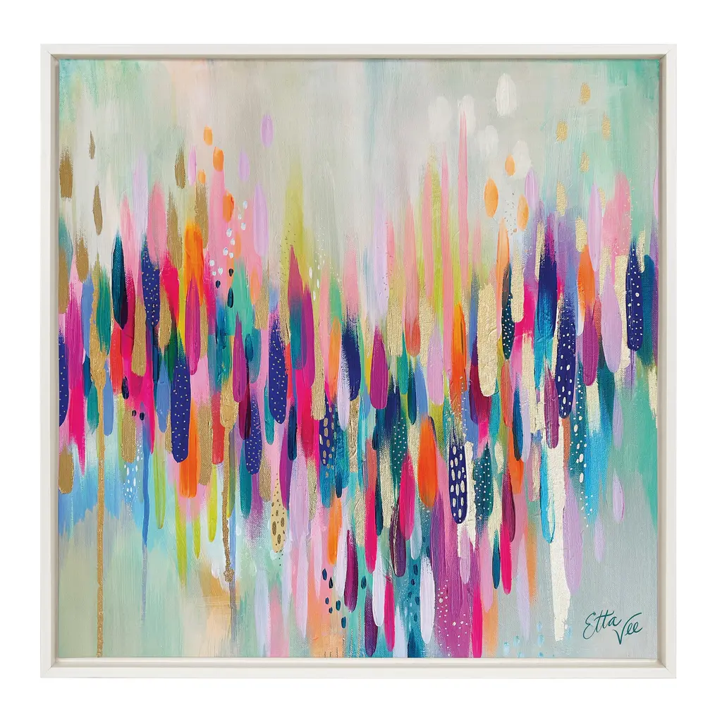 Transform your space with this bright, abstract wall art piece by Jessi Raulet of Ettavee. Its lovely, colorful brushstrokes provide your space with a needed addition of creativity and energy. Framed in the USA in Waunakee, Wisconsin, this modern floating canvas art is sure to bring joy to your space. Our design team curates art that will fit perfectly in any room of your home. Showcase this art in your living room, bedroom, home office, kitchen, bathroom, nursery, or anywhere you want to bring a little beauty and charm to your walls. Specializing in home décor, we are continually bringing timeless works of art for the traditional decorator as well as trend-forward pieces for that eclectic art lover. Our high-quality framed canvas art also makes excellent gifts for birthdays, holidays, or housewarming parties. Printed on gallery-wrapped canvas and framed with a simple gallery frame this wall art is easy to display on the wall and will match with any décor style. The outer dimensions are 30 inches by 30 inches by 1.6 inches. Print Name: "Brushstroke 154"