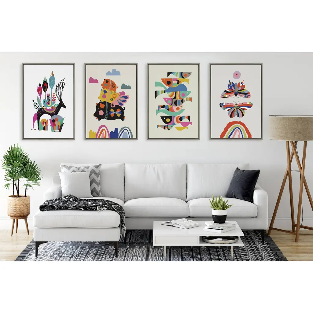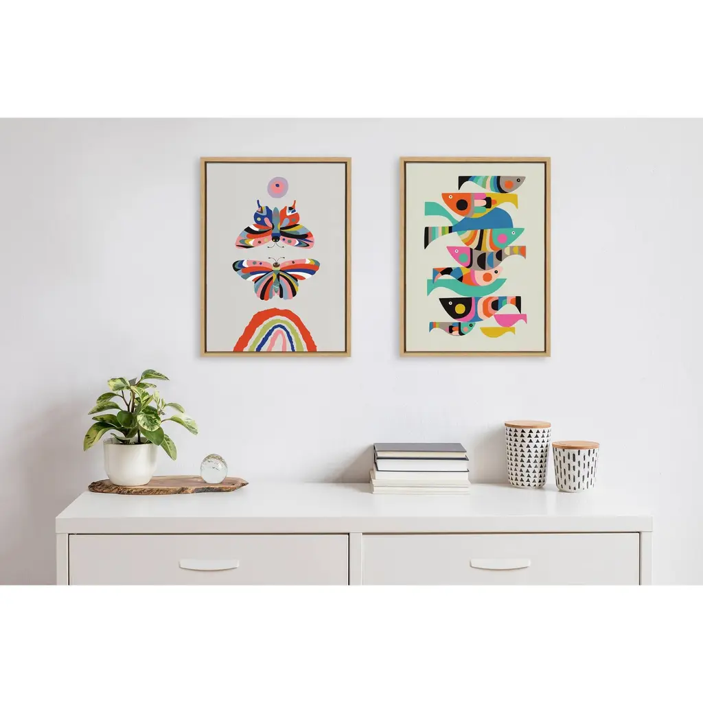 Showcase your appreciation for brightly-colored artwork when hanging this framed canvas wall art in your bedroom, hallway, living room, or dining space. Exuding a contemporary style to complement your furnishings and decor, this canvas wall art is equipped with hangers to easily add to multiple wall surfaces.Material: Canvas, MDF, polystyreneStyle: Modern, contemporaryOrientation: PortraitSubject: AnimalsFrame color: BrownShape: RectangularIncludes hangers: YesDimensions: 33 inches tall x 23 inches wide x 1.6 inches deep