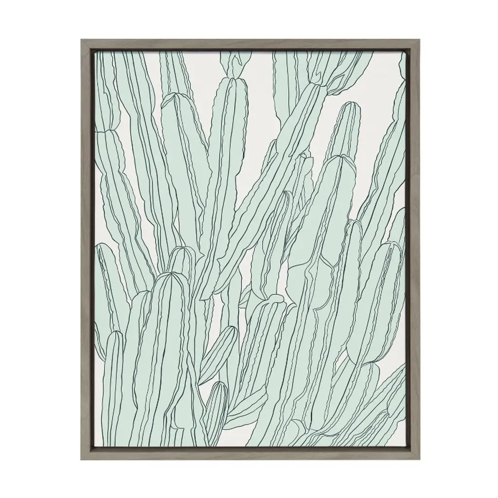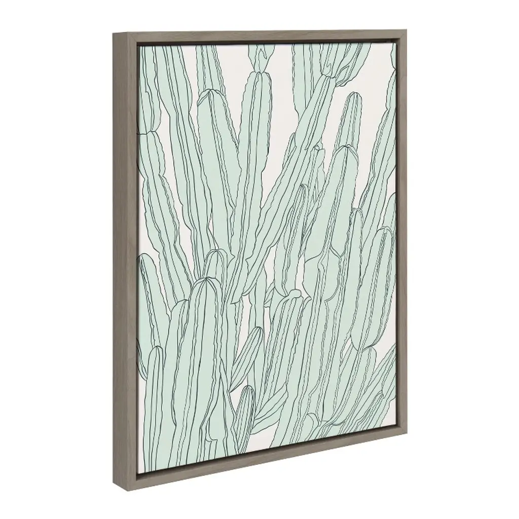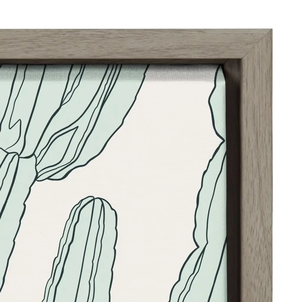 Add a southwestern-inspired flair to your home with this cactus inspired print by artist Alicia Schultz. Framed in the USA in Waunakee, Wisconsin, this floating canvas art will be a pleasure to look at every day in your living room, bedroom, dining room, or any room in the home that needs a southwestern flair. Printed on gallery-wrapped canvas and framed with a lightweight polystyrene frame, this wall art has two hangers already attached to the MDF back for easy wall display. The outer dimensions are 24 inches tall by 18 inches wide by 1.63 inches deep. Print Name: ?Cacti Garden?