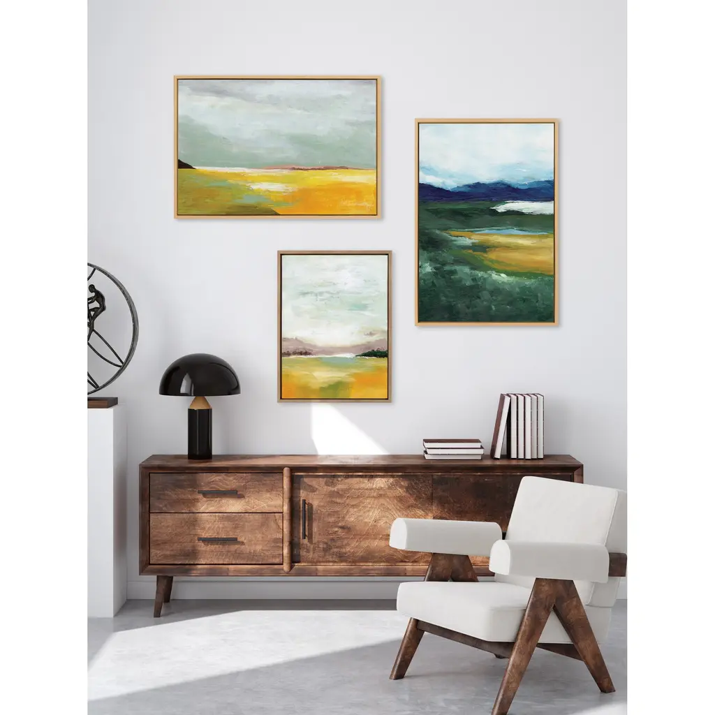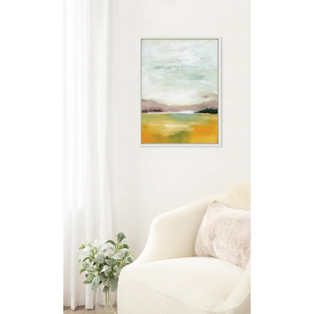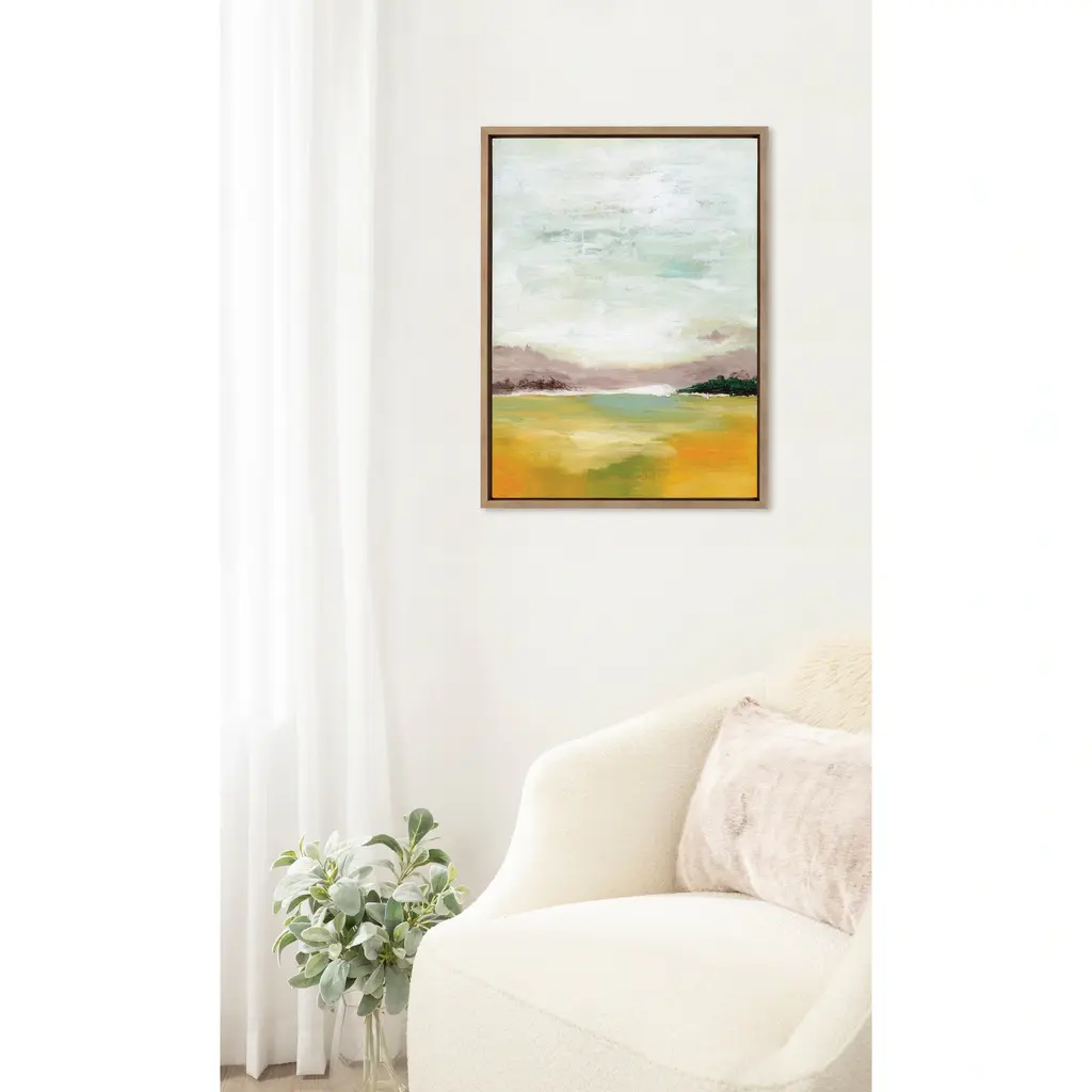 Craft a thoughtful, nature-filled gallery wall display with this gorgeous art piece from Nikita Jariwala. This artwork perfectly intermingles vibrant and pastel shades to create a stunning nature landscape. Framed in the USA in Waunakee, Wisconsin, this modern floating canvas art is sure to bring joy to your space. Our design team curates art that will fit perfectly in any room of your home. Showcase this art in your living room, bedroom, home office, kitchen, bathroom, nursery, or anywhere you want to bring a little beauty and charm to your walls. Specializing in home décor, we are continually bringing timeless works of art for the traditional decorator as well as trend-forward pieces for that eclectic art lover. Our high-quality framed canvas art also makes excellent gifts for birthdays, holidays, or housewarming parties. Printed on gallery-wrapped canvas and framed with a simple gallery frame this wall art is easy to display on the wall and will match with any décor style. The outer dimensions are 18 inches by 24 inches by 1.6 inches. Print Name: "Canary Forest"