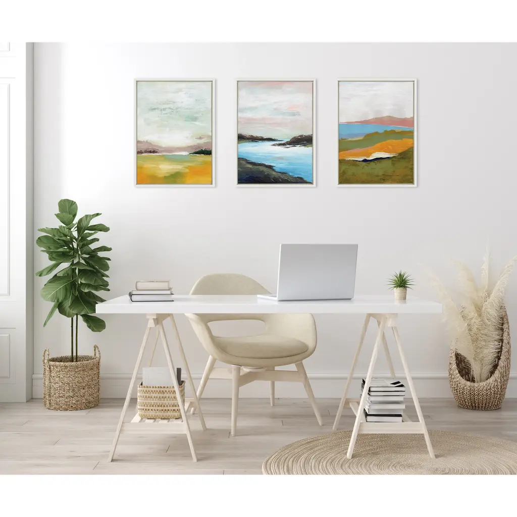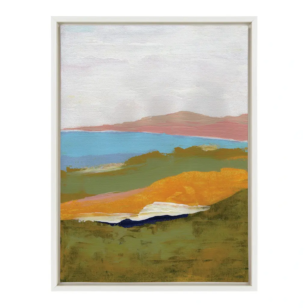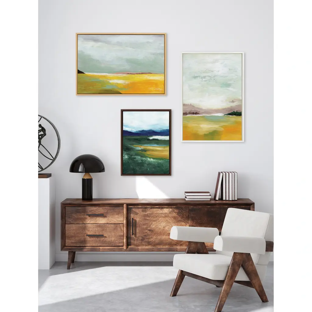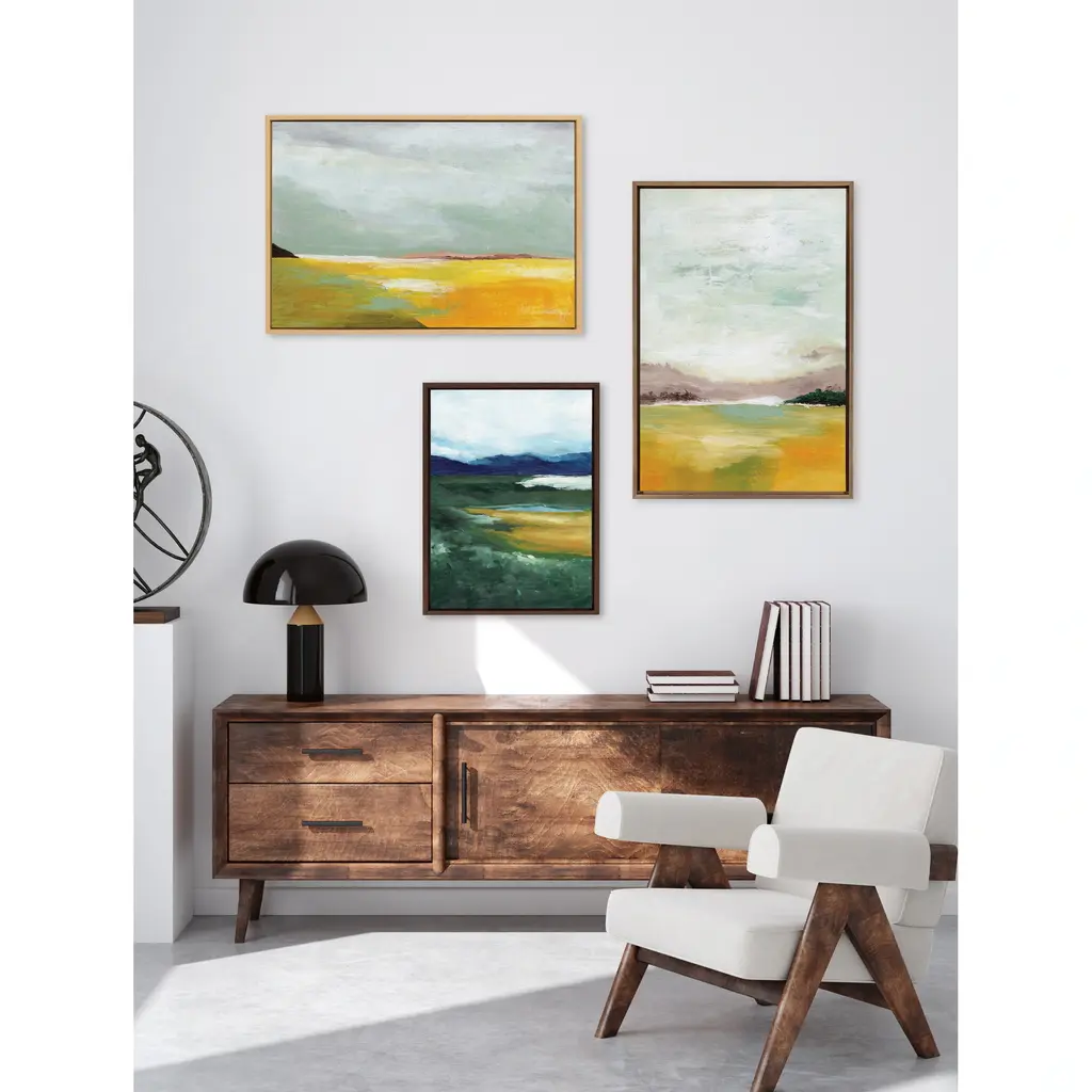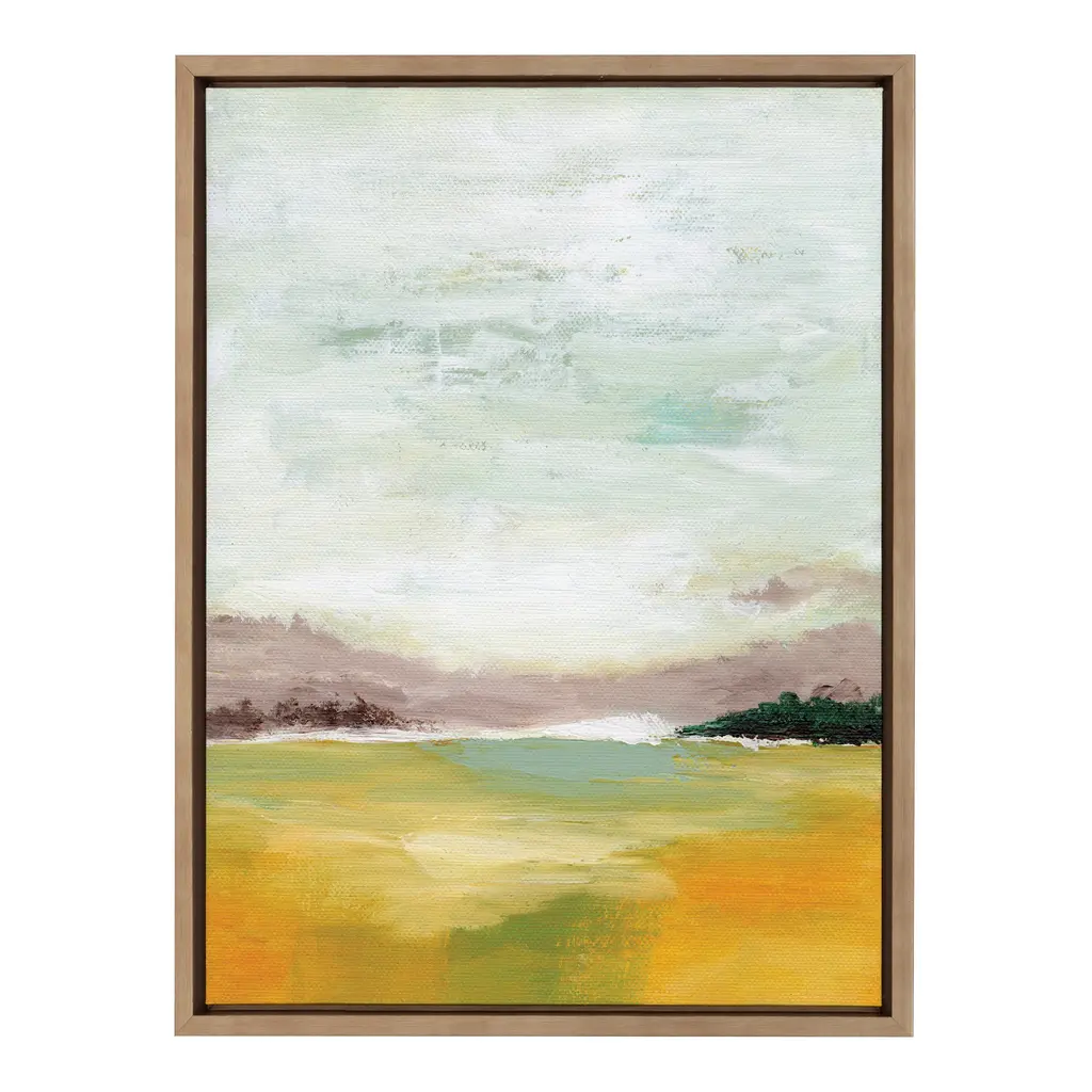 Craft a thoughtful, nature-filled gallery wall display with this gorgeous art piece from Nikita Jariwala. This artwork perfectly intermingles vibrant and pastel shades to create a stunning nature landscape. Framed in the USA in Waunakee, Wisconsin, this modern floating canvas art is sure to bring joy to your space. Our design team curates art that will fit perfectly in any room of your home. Showcase this art in your living room, bedroom, home office, kitchen, bathroom, nursery, or anywhere you want to bring a little beauty and charm to your walls. Specializing in home décor, we are continually bringing timeless works of art for the traditional decorator as well as trend-forward pieces for that eclectic art lover. Our high-quality framed canvas art also makes excellent gifts for birthdays, holidays, or housewarming parties. Printed on gallery-wrapped canvas and framed with a simple gallery frame this wall art is easy to display on the wall and will match with any décor style. The outer dimensions are 18 inches by 24 inches by 1.6 inches. Print Name: "Canary Forest"
