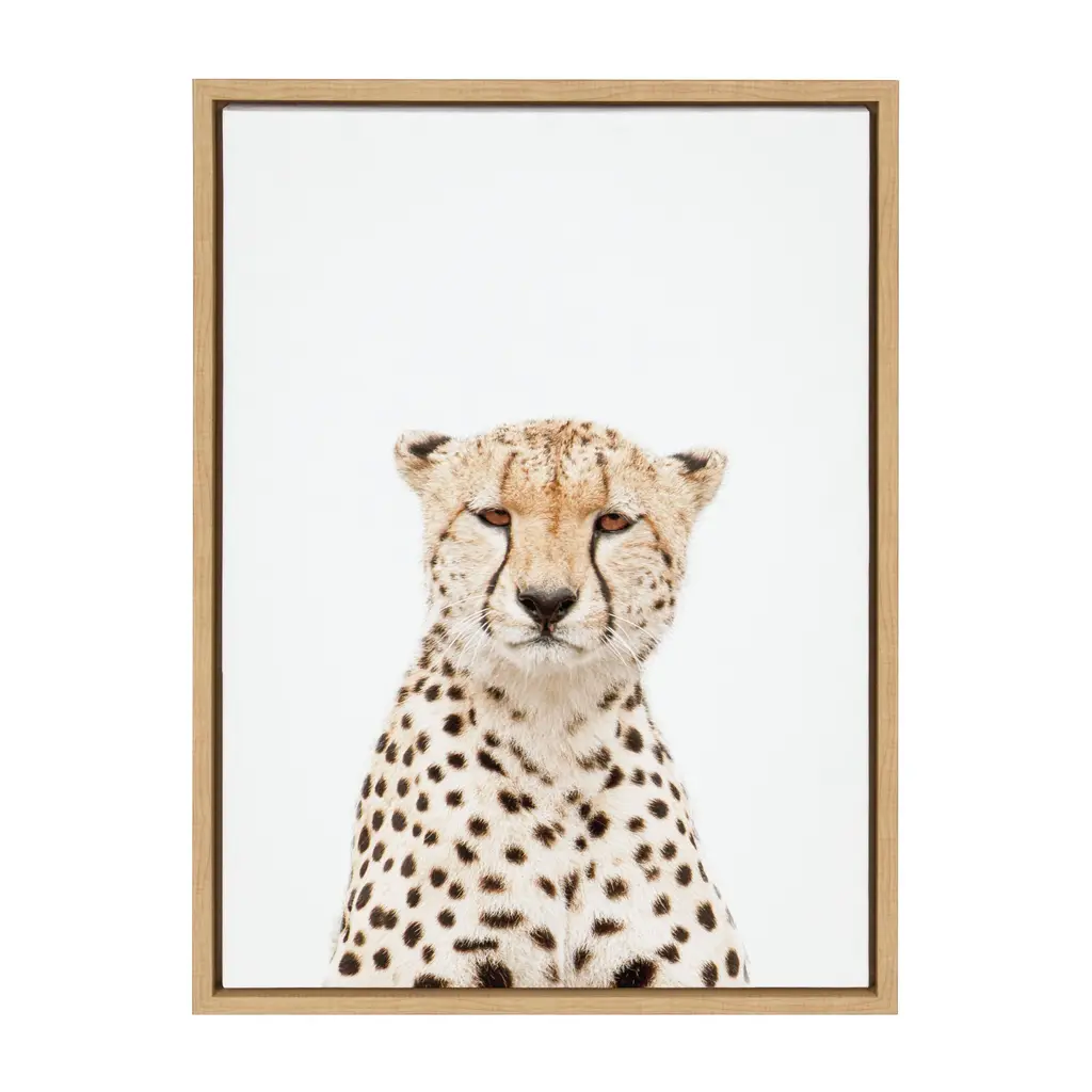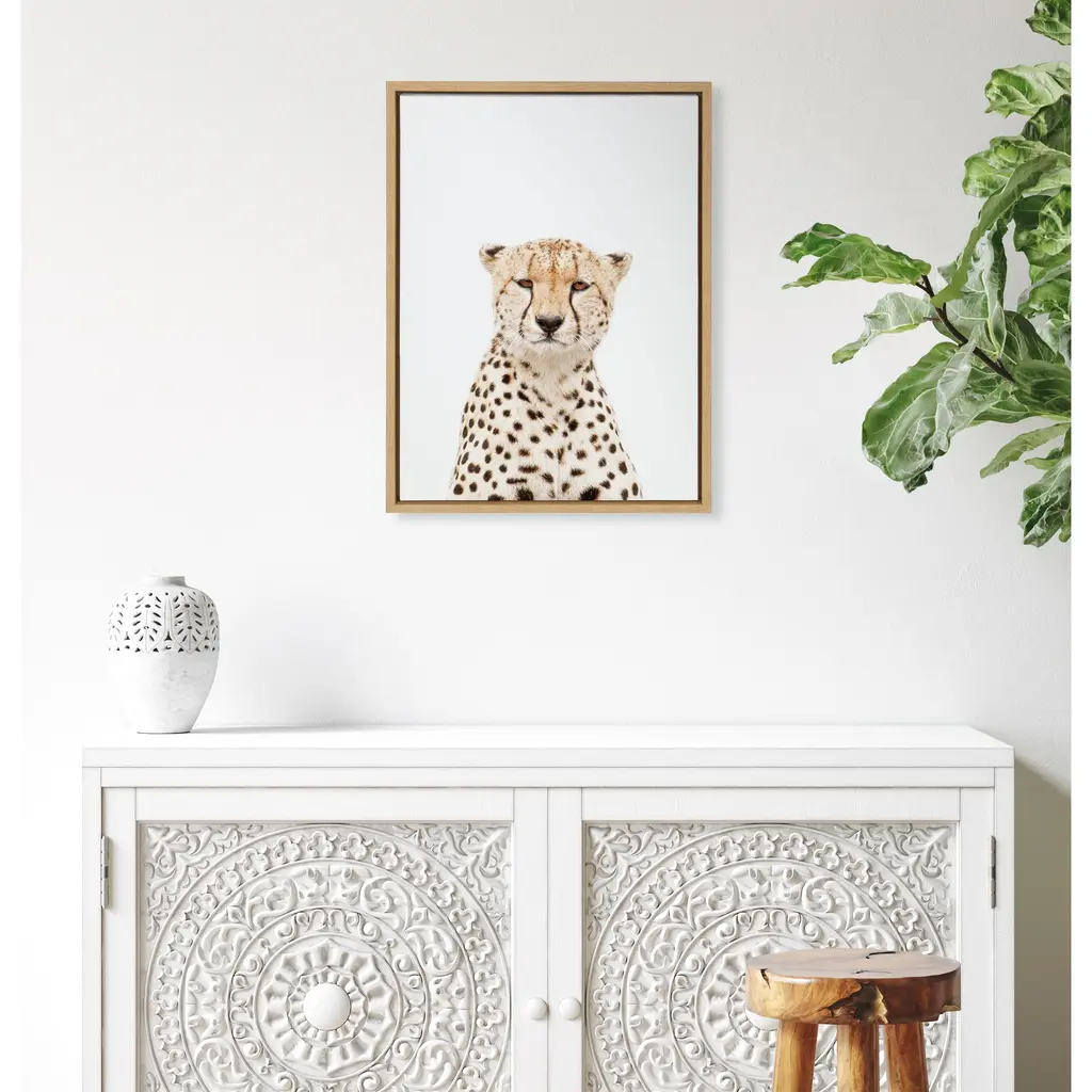 Provide your space with some whimsical appeal with this jungle cheetah portrait. This lovely, light piece by Amy Peterson Art Studio is perfect for any animal lover. Framed in the USA in Waunakee, Wisconsin, this floating canvas art will be a pleasure to look at every day in your living room, bedroom, nursery, or any room in the home. This art print also makes an excellent gift for birthdays, holidays, or house-warming parties. Printed on gallery-wrapped canvas and framed with a lightweight polystyrene frame, this wall art is easy to display on the wall. The outer dimensions are 18 inches by 24 inches by 1.6 inches. Print Name: "Cheetah Portrait"