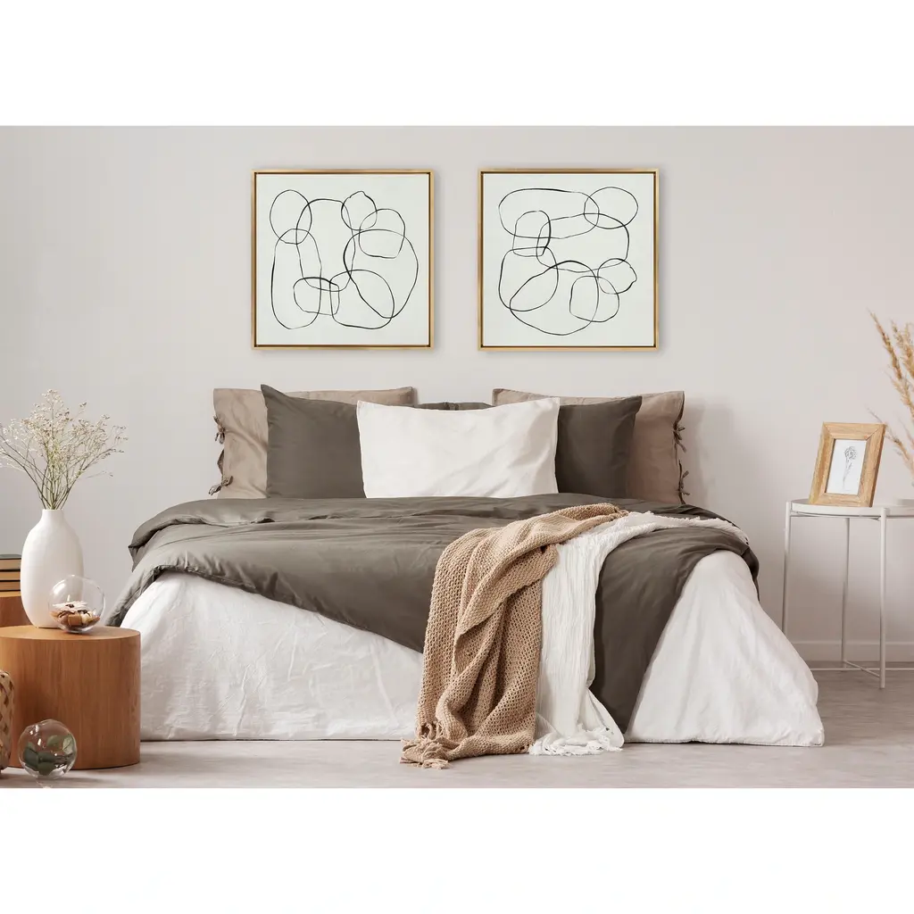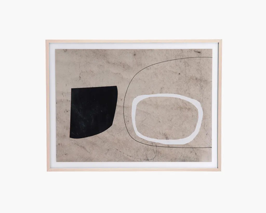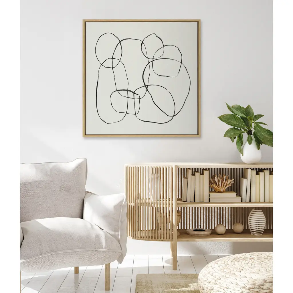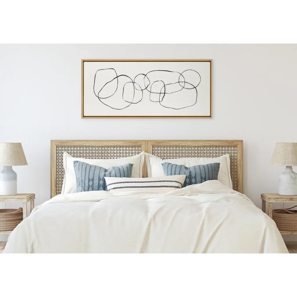 Create an enigmatic aesthetic in your home that exudes modern minimalist sophistication with this abstract art piece. Framed in the USA in Waunakee, Wisconsin, this floating canvas art will be a pleasure to look at every day in your living room, bedroom, office, or any room in the home. This art print also makes an excellent gift for birthdays, holidays, or housewarming parties. Printed on gallery-wrapped canvas and framed with a lightweight polystyrene frame, this wall art has two hangers already attached to the MDF back for easy wall display. The outer dimensions are 40 inches by 18 inches by 1.62 inches. Print Name: "Dancing Circles"