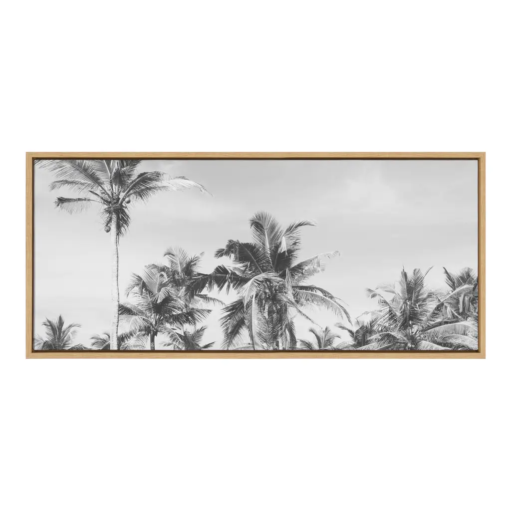 Kate And Laurel Sylvie Coastal Coconut Palm Tree Beach Bw Framed Canvas By The Creative Bunch Studio - Natural - 18x40