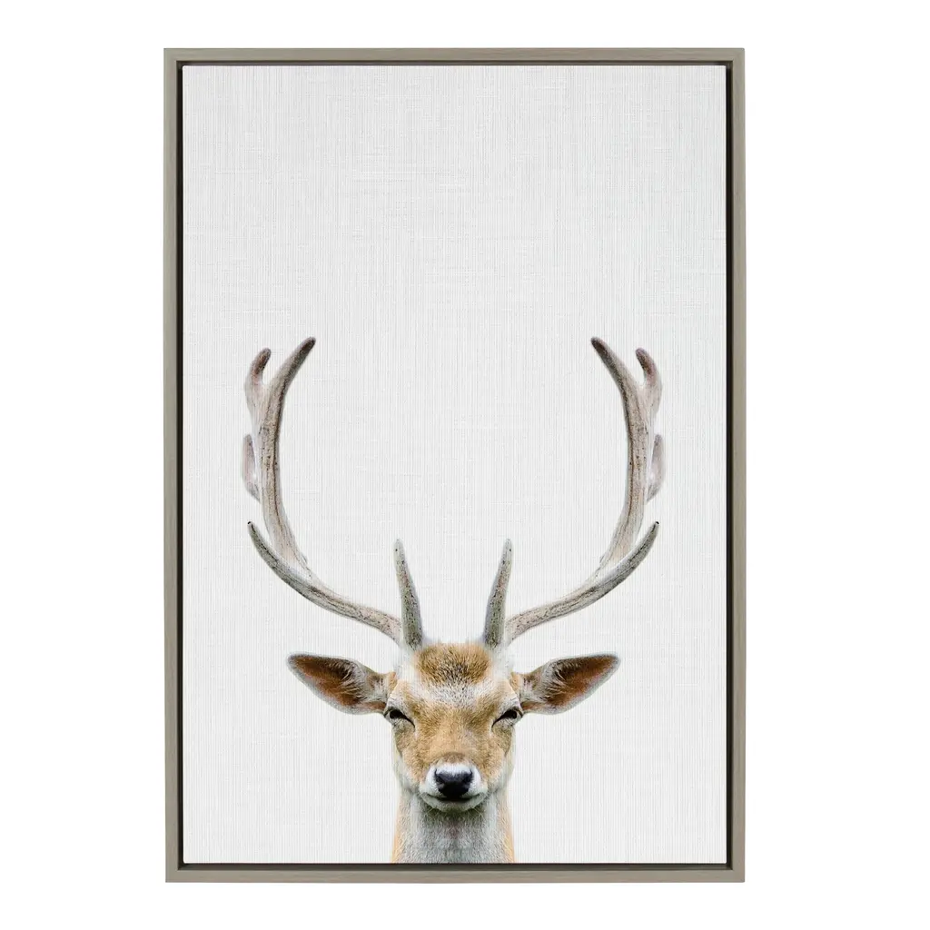 This framed canvas wall art by Simon Te of Tai Prints is a great way to introduce the charm of the forest to your space. Display your love of animals in your home with this powerful deer with antlers portrait. Framed in the USA in Waunakee, Wisconsin, this modern floating canvas art is sure to bring joy to your space. Our design team curates art that will fit perfectly in any room of your home. Showcase this art in your living room, bedroom, home office, kitchen, bathroom, nursery, or anywhere you want to bring a little beauty and charm to your walls. Specializing in home décor, we are continually bringing timeless works of art for the traditional decorator as well as trend-forward pieces for that eclectic art lover. Our high-quality framed canvas art also makes excellent gifts for birthdays, holidays, or housewarming parties. Printed on gallery-wrapped canvas and framed with a simple gallery frame this wall art is easy to display on the wall and will match with any décor style. The outer dimensions are 18 inches by 24 inches by 1.6 inches. Print Name: "Deer Color"