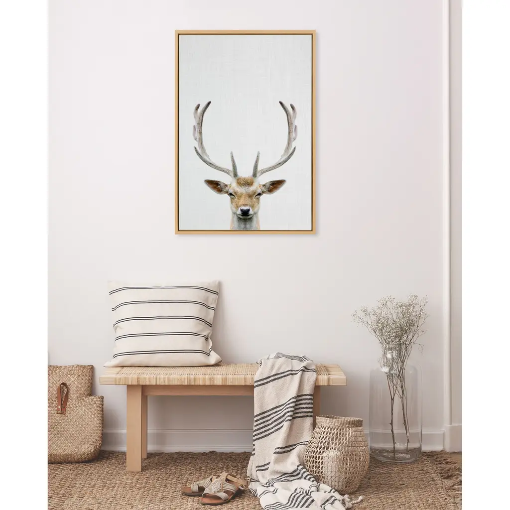 Kate And Laurel Sylvie Deer Color Framed Canvas By Simon Te - 18x24 - Natural